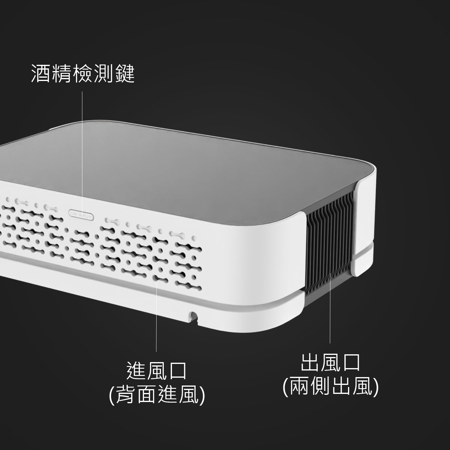 弱檔:風量弱+等離子運作3分鐘休7分鐘;一段白燈,長亮5秒後重新顯示空氣品質燈號;