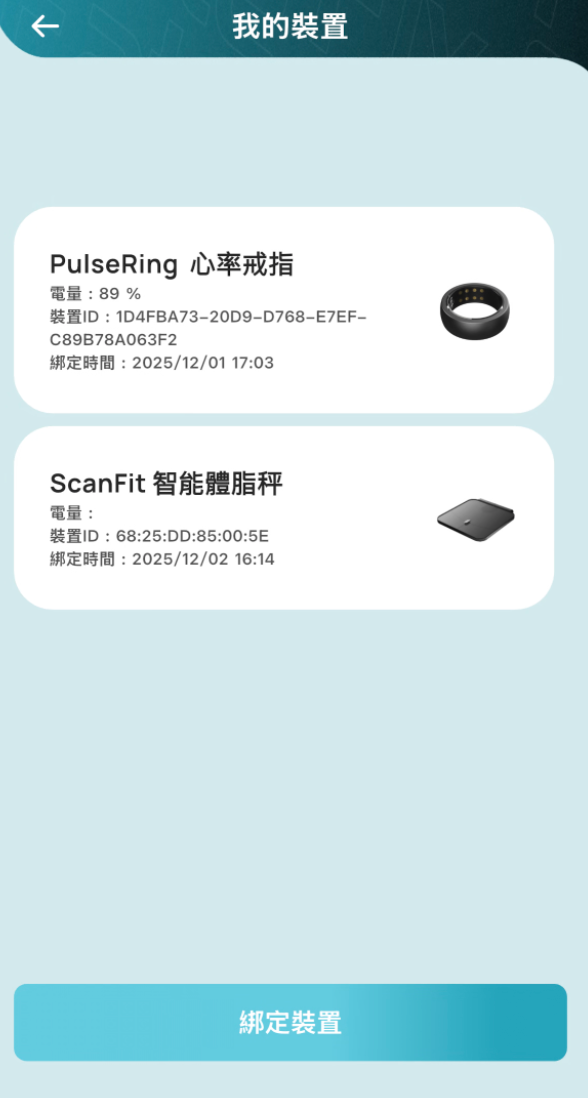 綁定成功後,請前往 App 主頁,點擊右下角的「設定」,並進入「我的設備」查看已綁定的智能體指秤以及相關設定和功能。