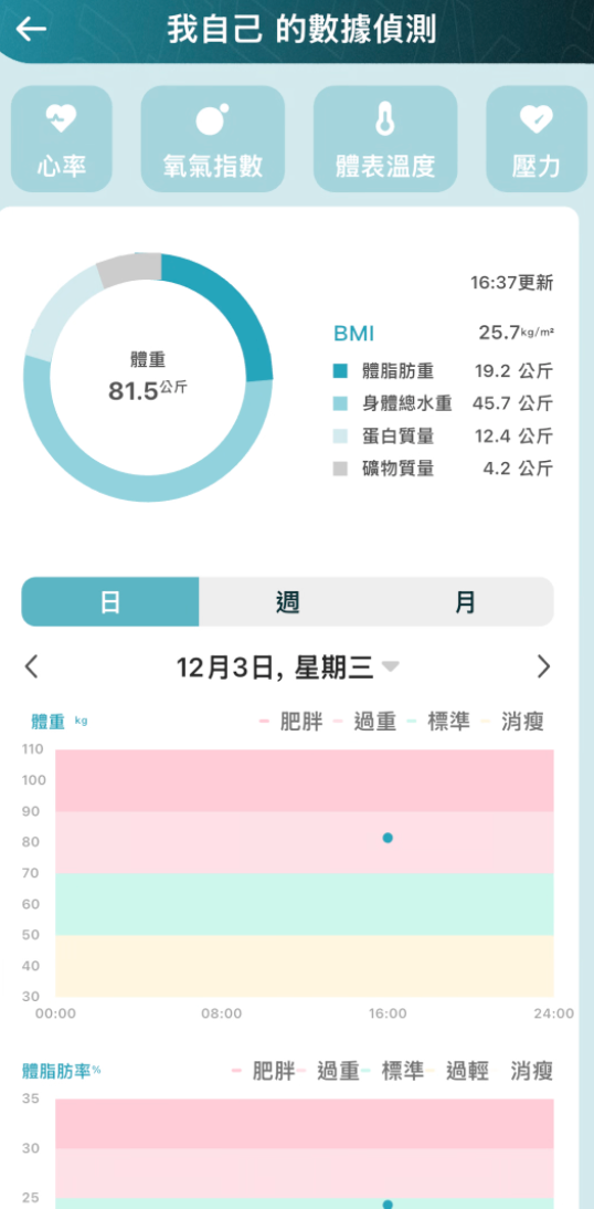 若某項指標顯示為「—」或無數據,代表目前裝置不支援該量測,或尚未有量測紀錄,並非系統異常。