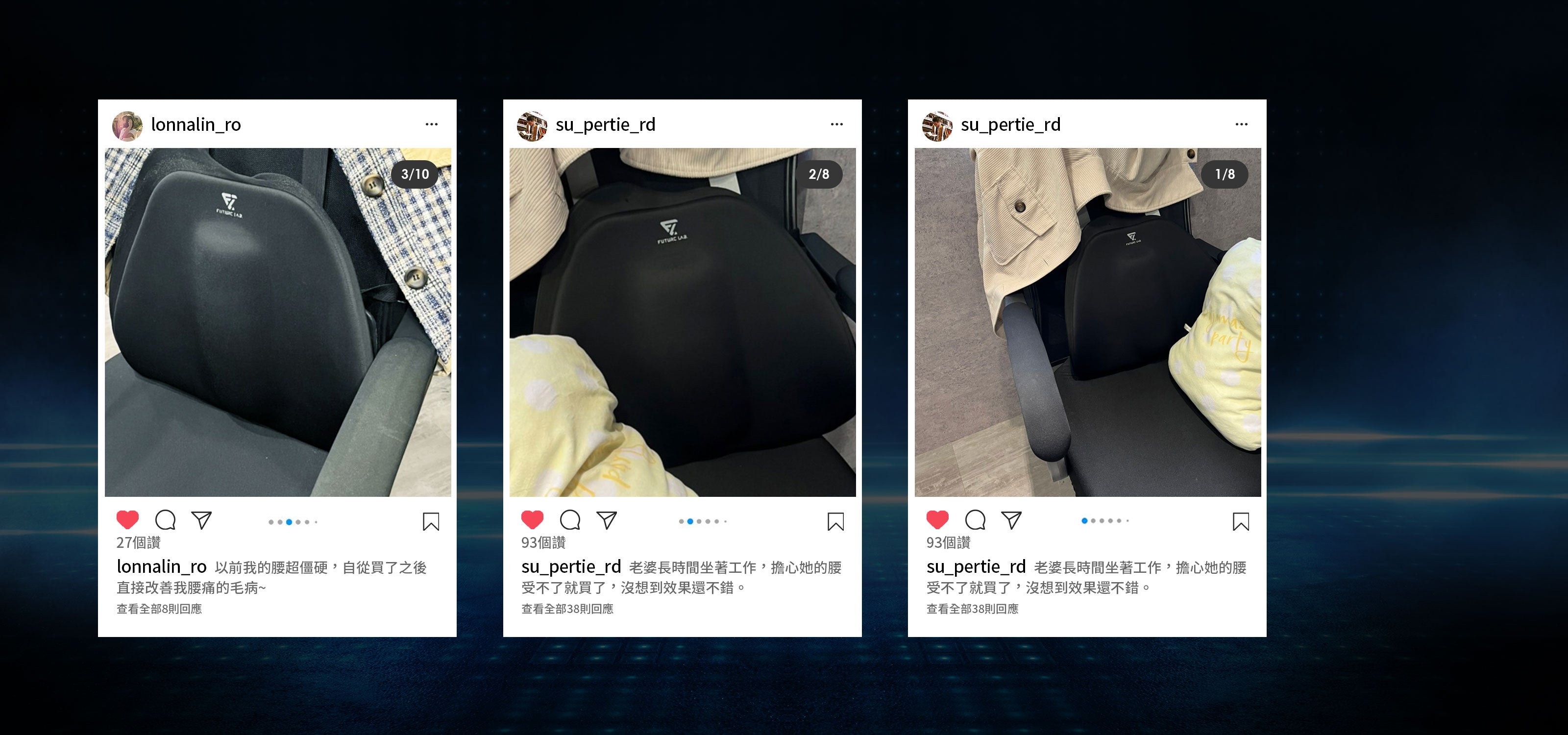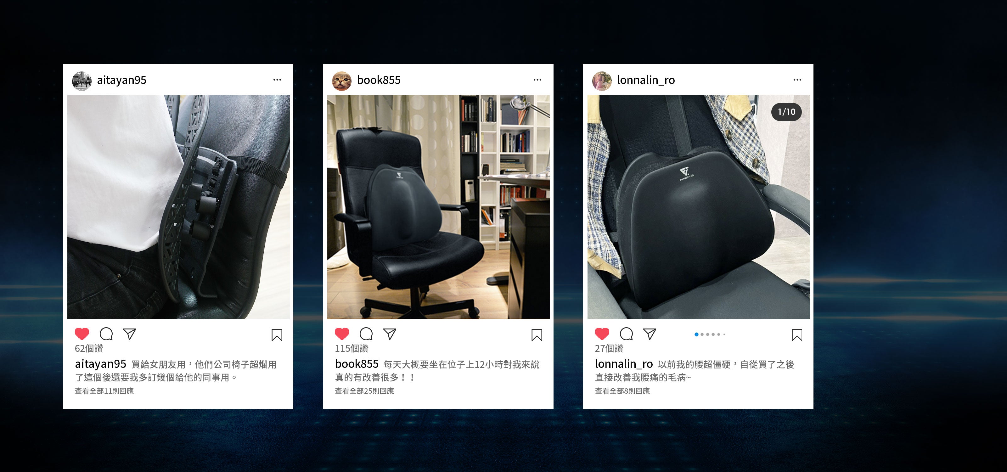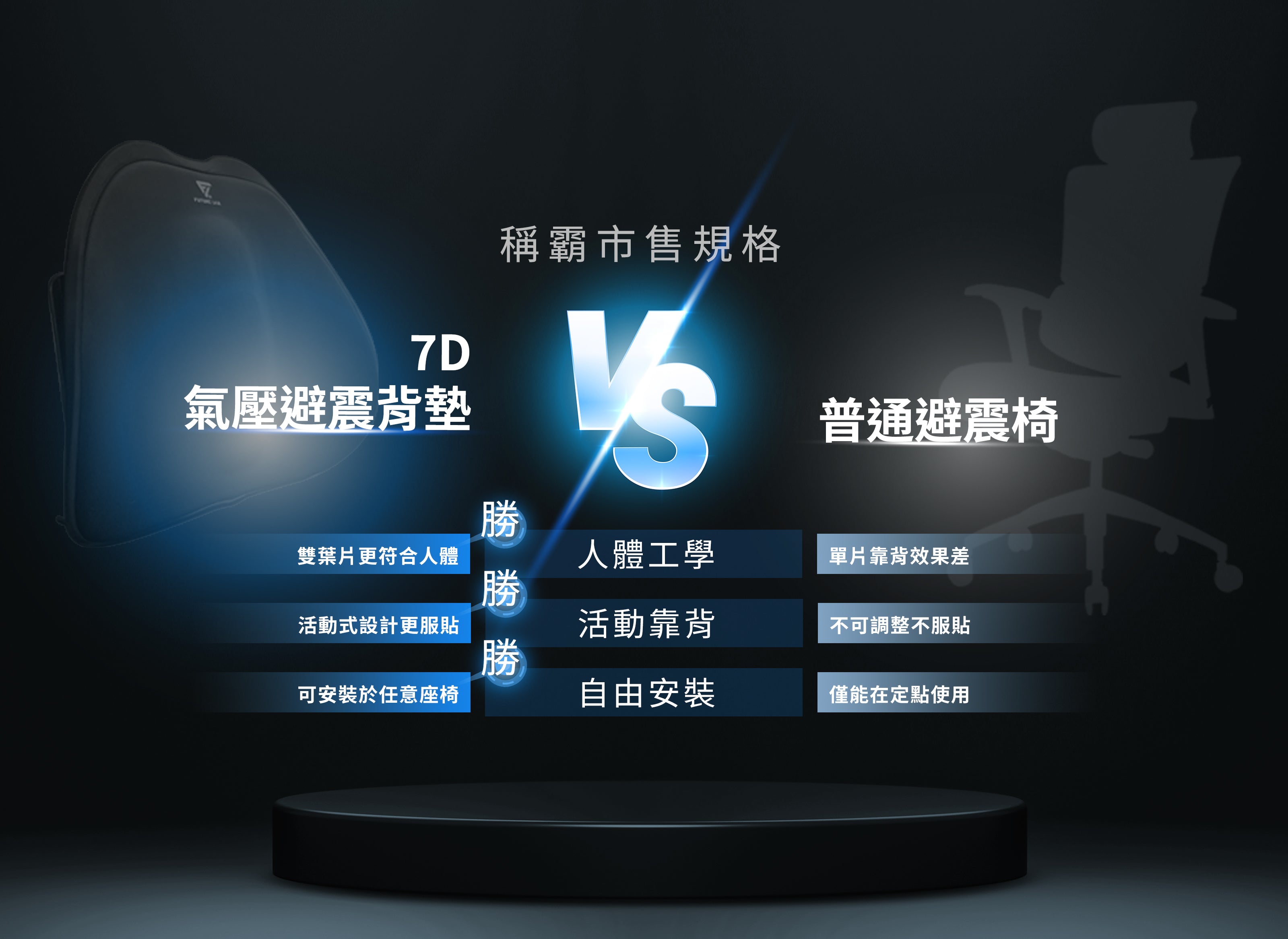 將避震器原理移植到背墊上,就是為了給你最穩固的支撐力,同時改善長時間彎腰駝背用電腦的問題,還能依每個人的身形微調到最佳角度,不為誰就是為了要打造出適合每個人的背墊。