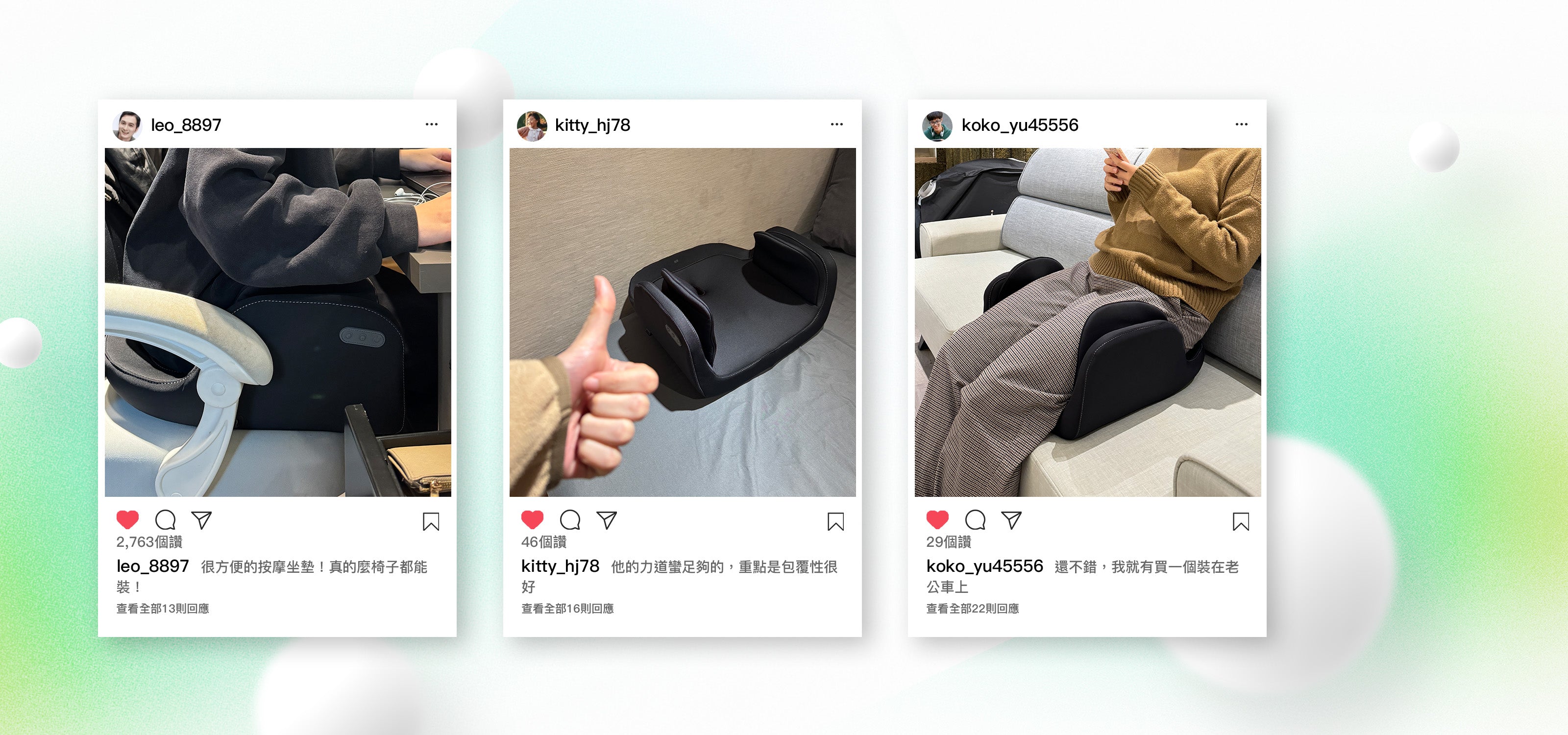不論在哪坐著,都能享受全方位按摩