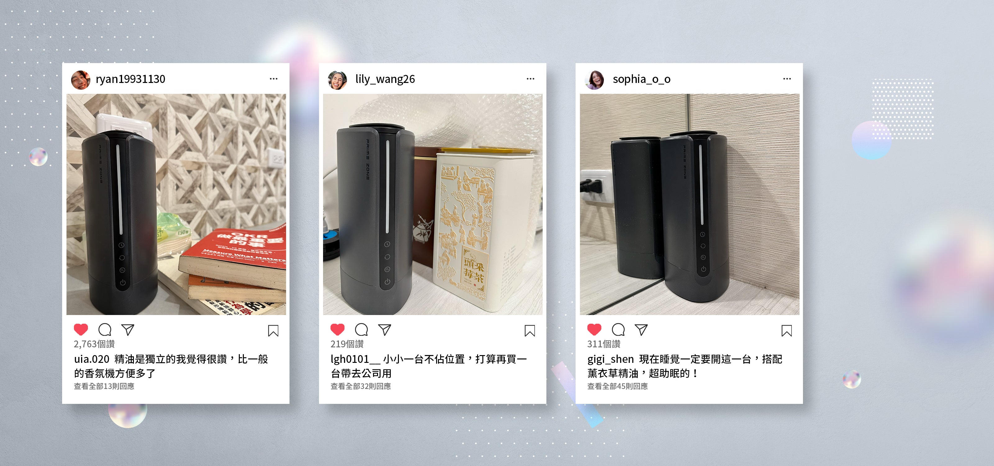 研發團隊特別關注到現代人對於減壓和提升空氣品質的需求,因此開發了一款結合香氛和滅菌功能的多功能水霧機。AromaO3 精油滅菌水霧機不僅能夠紓解壓力、舒緩緊張情緒,還能有效滅菌。小巧設計不佔空間,這不僅是一台水霧機,更是你的情緒價值夥伴!