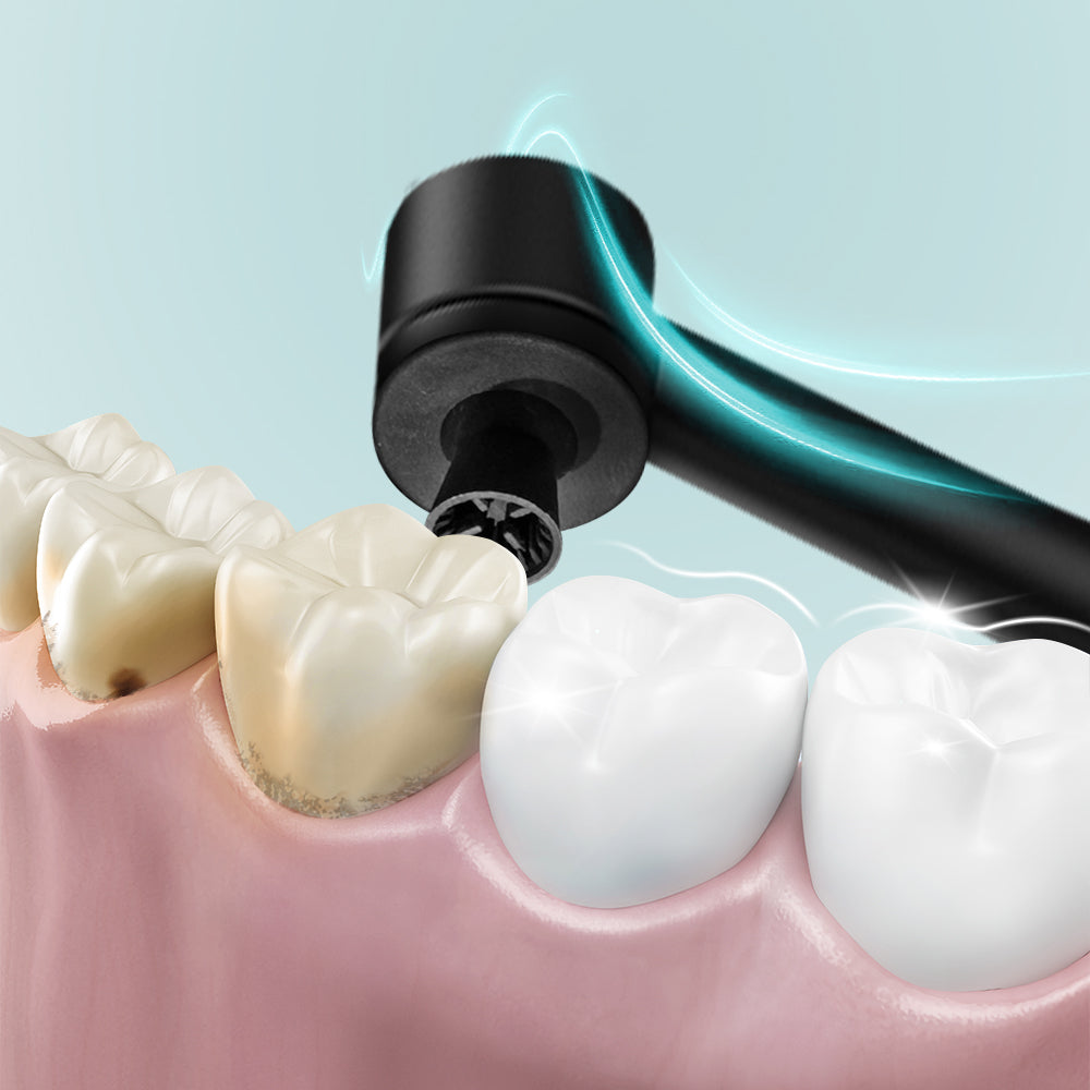 最高可達12000轉/分鐘,針對口腔死角、牙齒縫隙進行深層清潔,有效去除牙菌斑,並針對牙齒表面進行拋光清潔及牙齦按摩