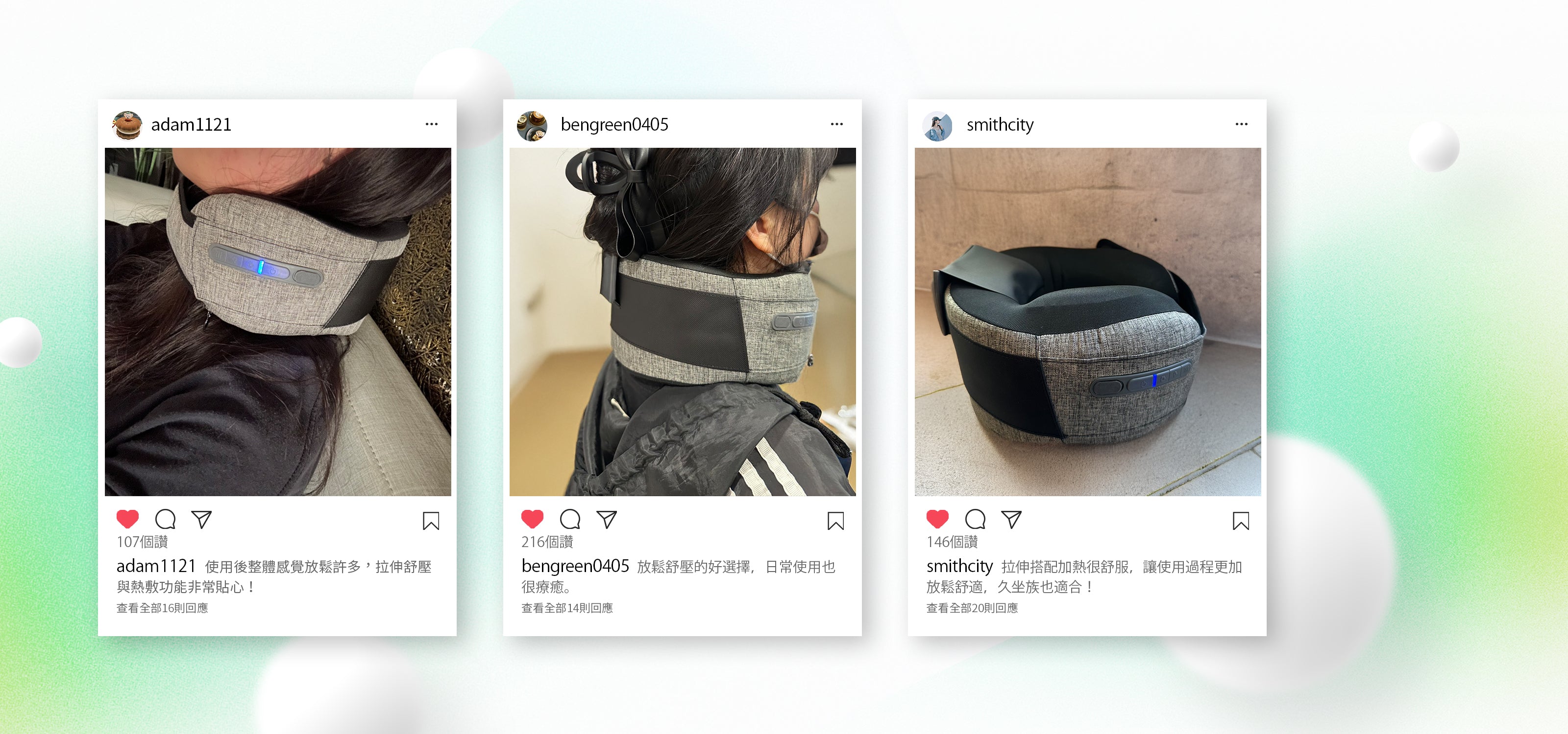 面對台灣多變氣候與長時間久坐工作的生活型態,研發團隊歷時一年半測試與改良,精心打造這款自動氣囊的 FlexiNeck 頸部舒壓按摩枕,可依據個人使用習慣自由調節拉伸模式與溫度,找回日常的舒適節奏。