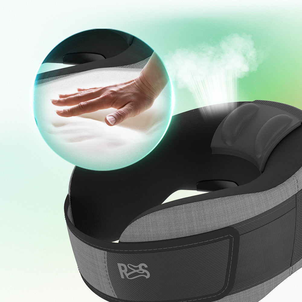 360度U型環頸設計,完美貼合頸部曲線;高彈記憶棉搭配親膚透氣材質,舒適支撐不悶熱。