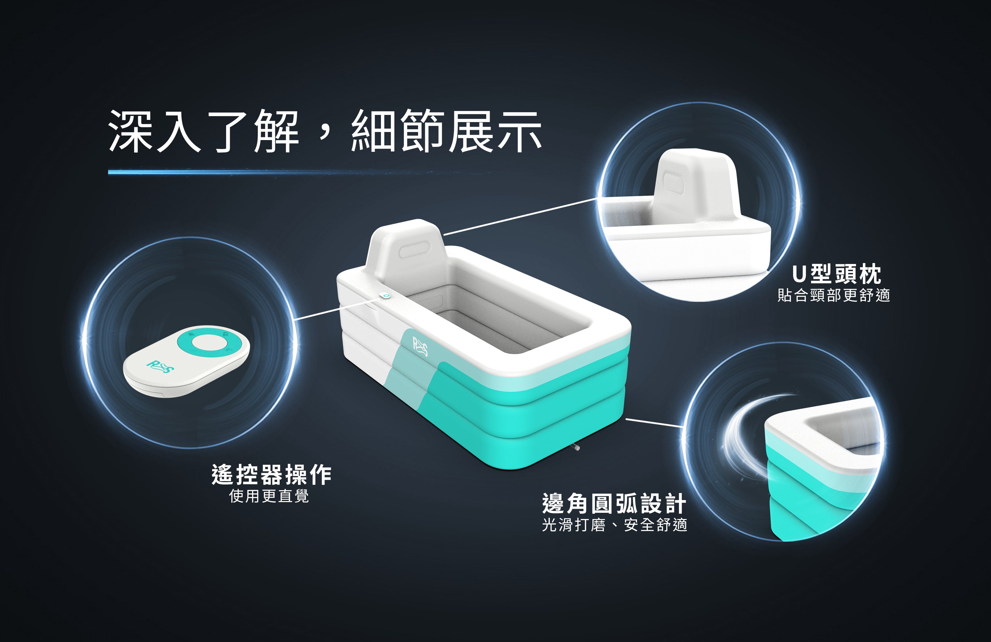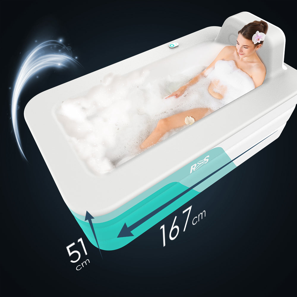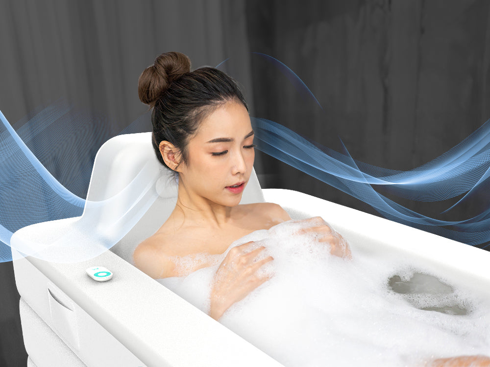 自動充氣不費力 : 40秒輕鬆充氣 / 60秒快速洩氣。黑科技大氣流極速成型、收納,省去繁複安裝時間,享受智能便捷的泡澡時光。