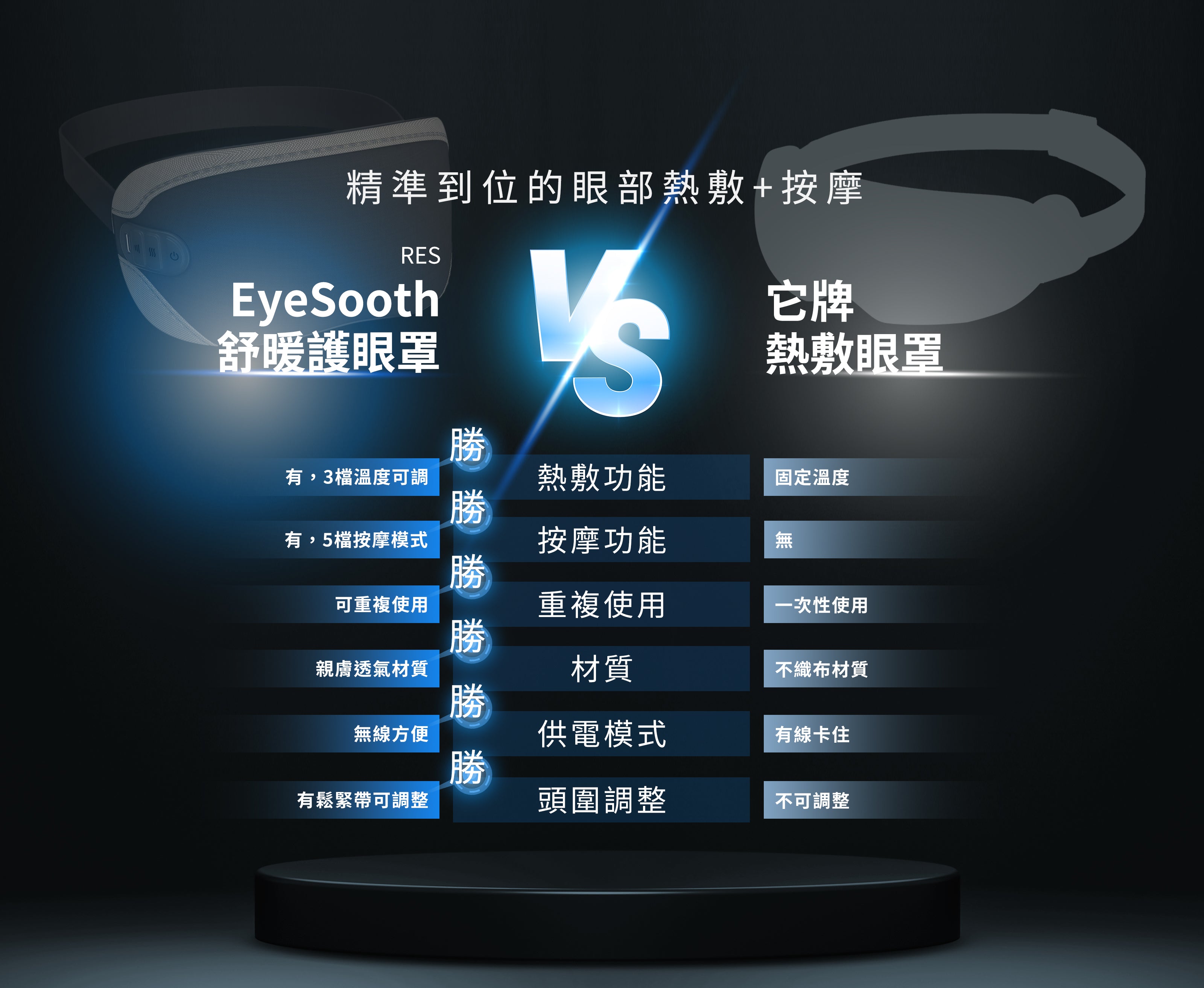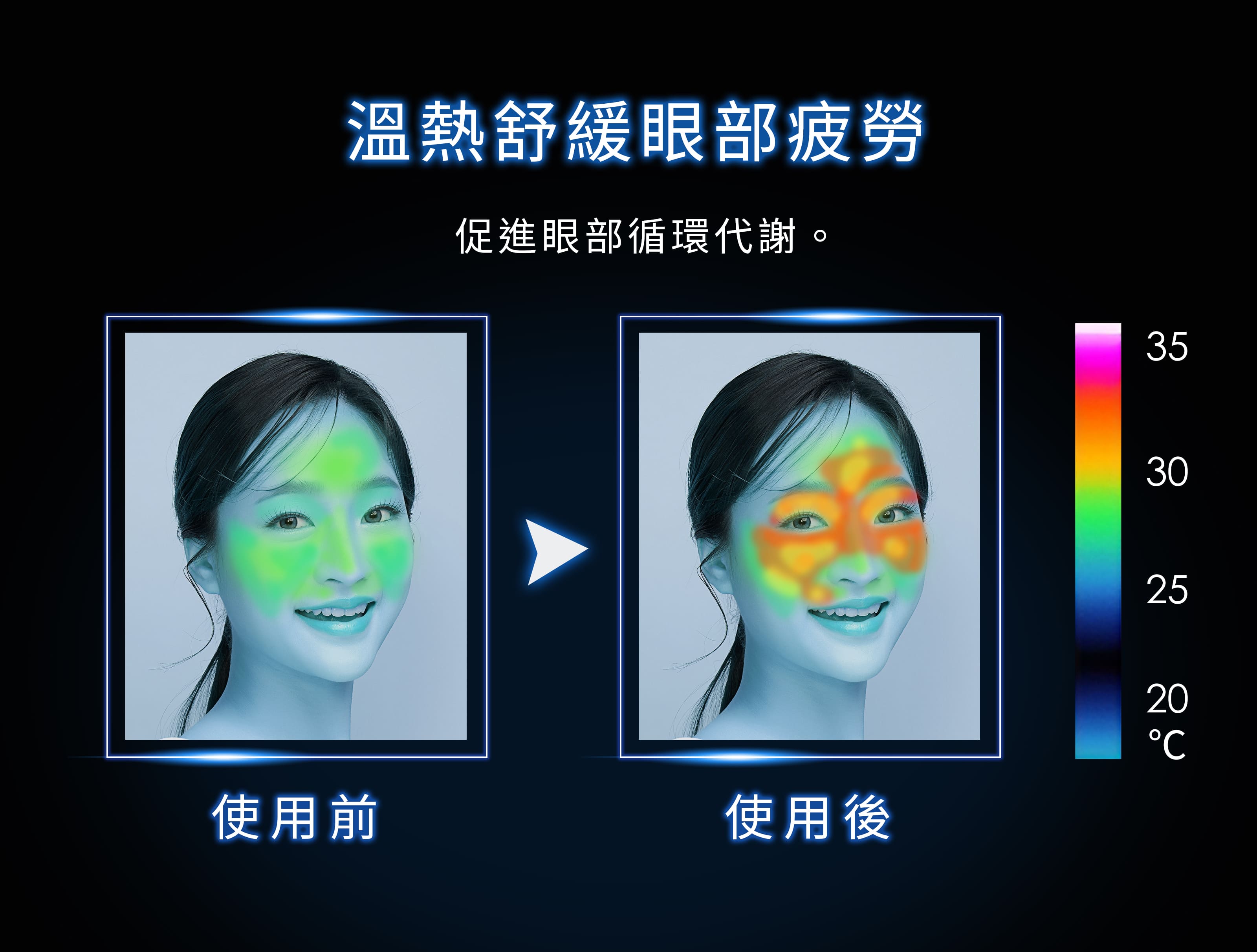 熱敷模式降機用眼過度的疲勞感,根據疲勞程度調整溫度,利用溫度滲透眼部肌肉。