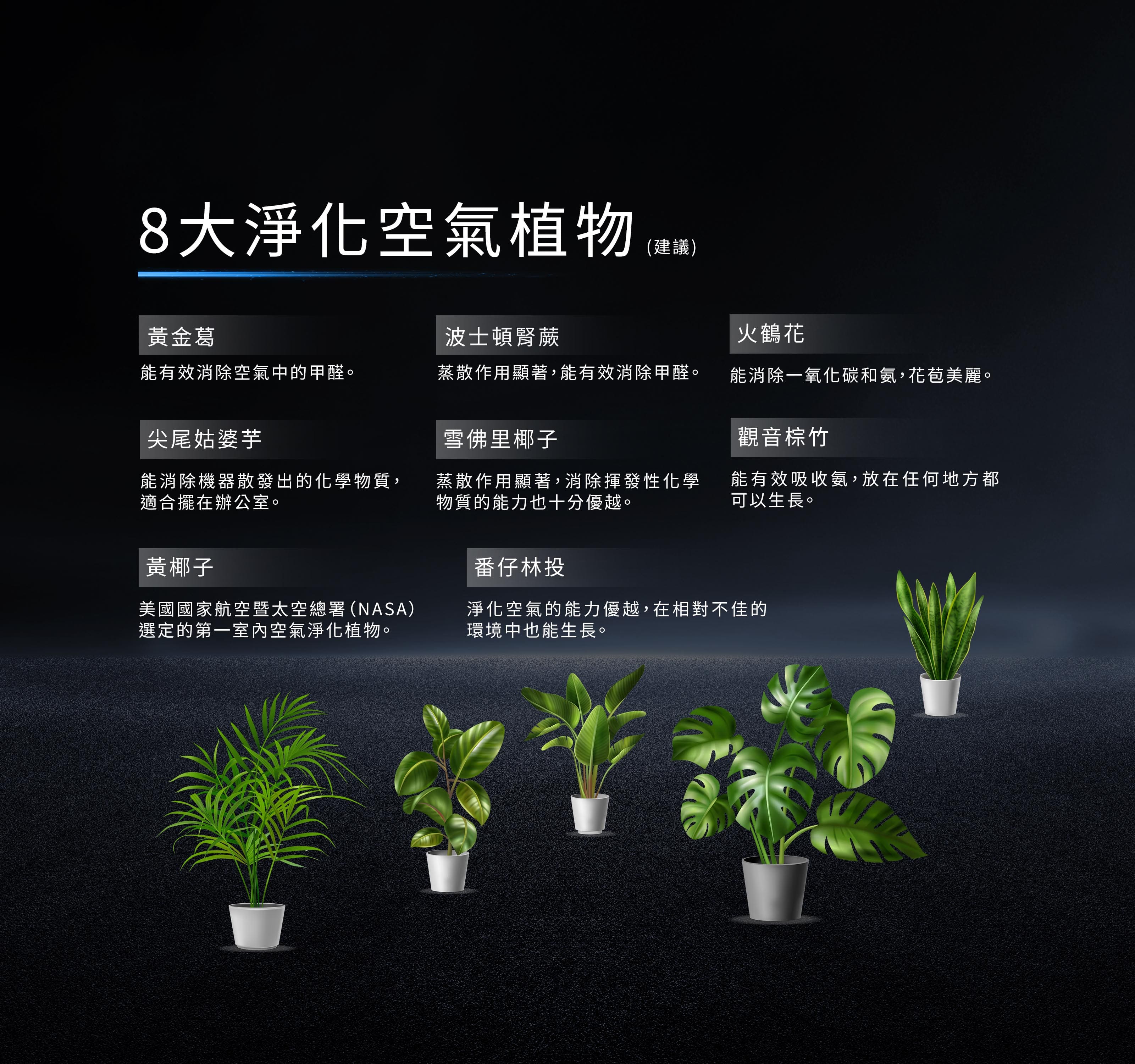 負離子針對異味消除有著顯著的效果,同時也能附著在灰塵上,讓其變重落下更好捕捉。