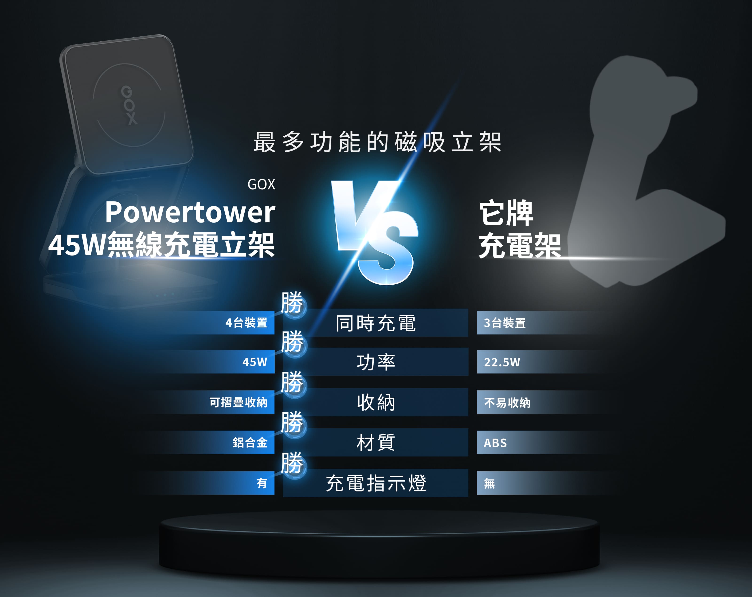 一次提供手機 / 手錶 / 耳機 / Type-c輸出口,4種類型的充電需求,支援多種無線充電標準、兼容各種品牌,一機滿足多元蓄電需求