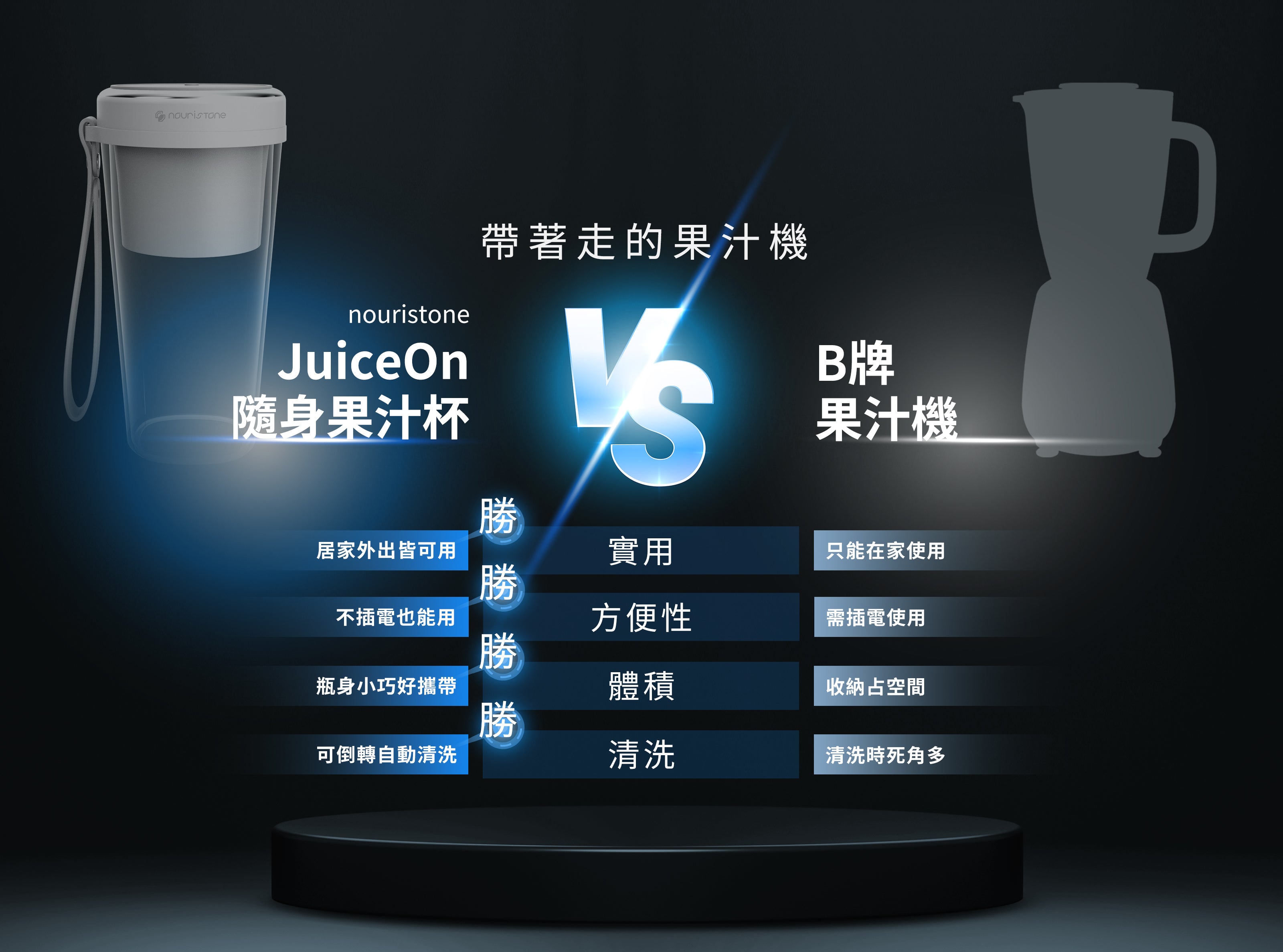 專為外出設計的輕量外型,顛覆傳統家用榨汁機,隨時隨地現榨帶著走。