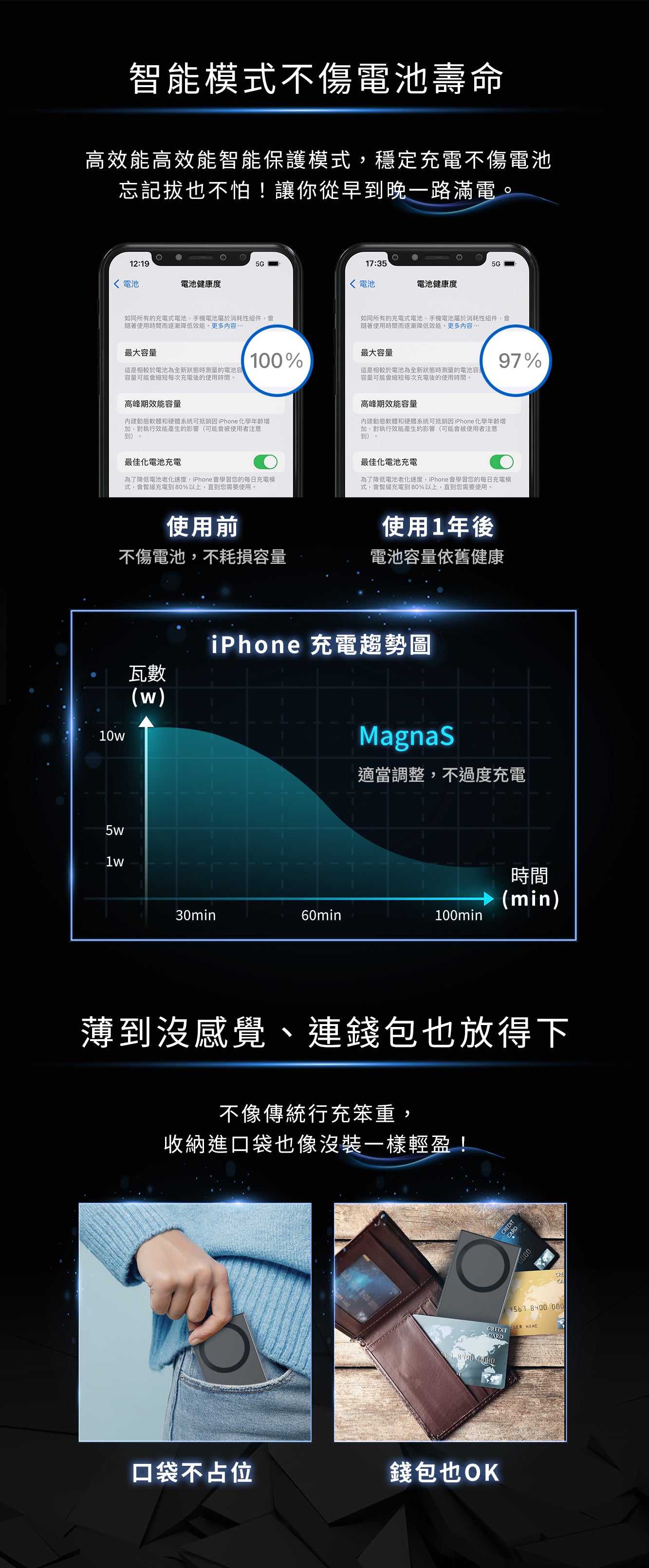 吸住充電可輕鬆和手機放進口袋不加重手機重量,襯衫口袋也不鬆垮