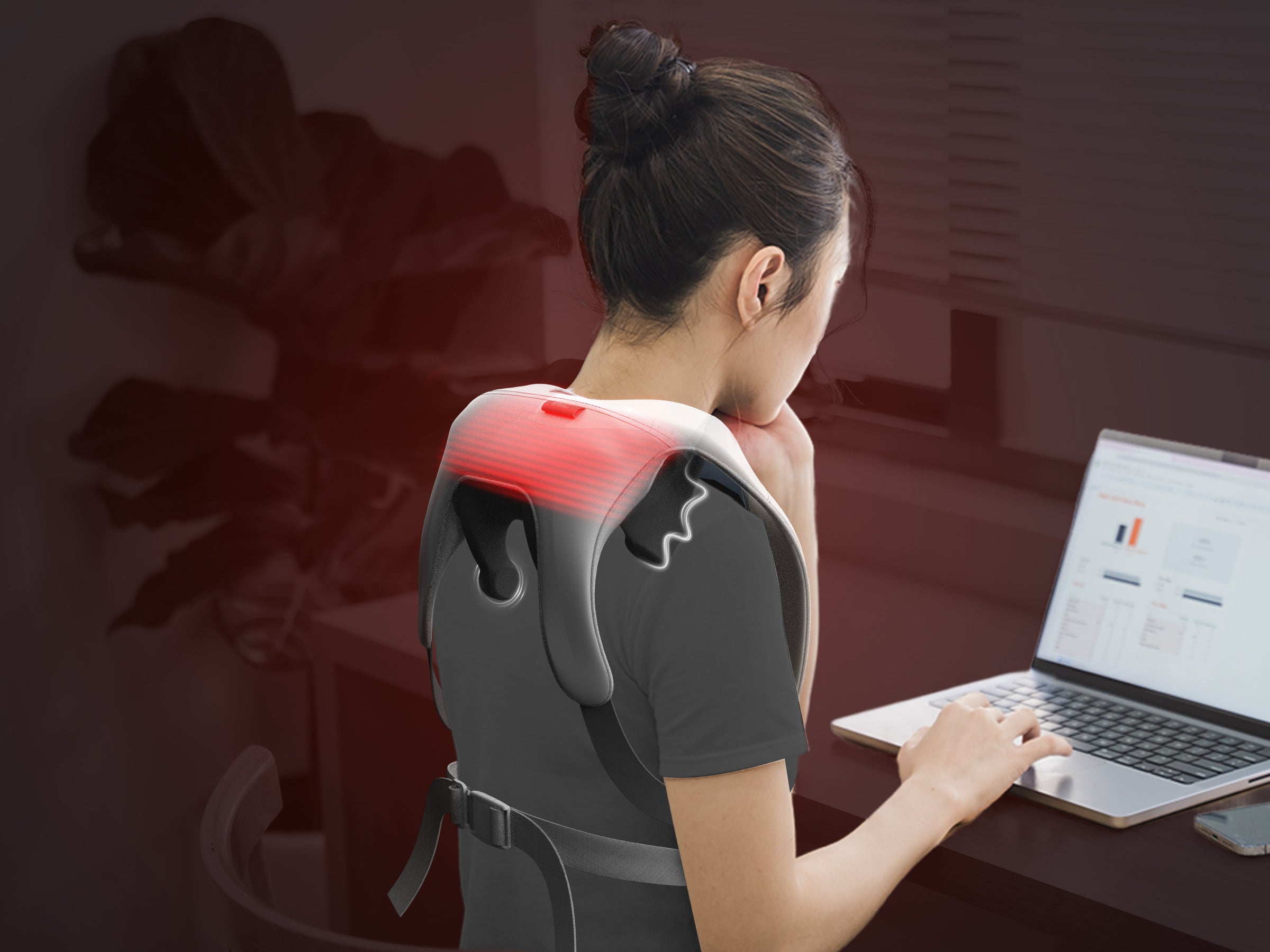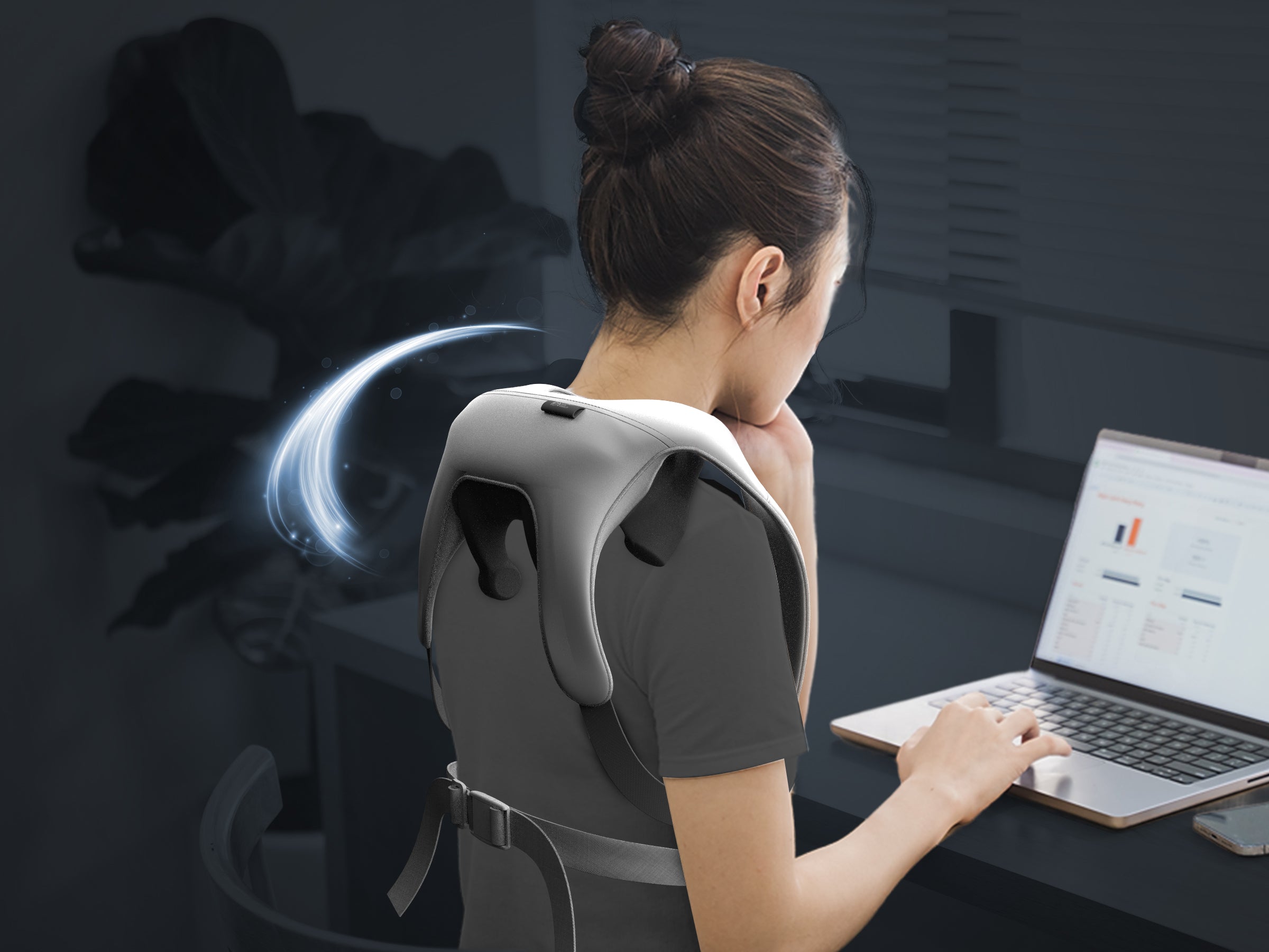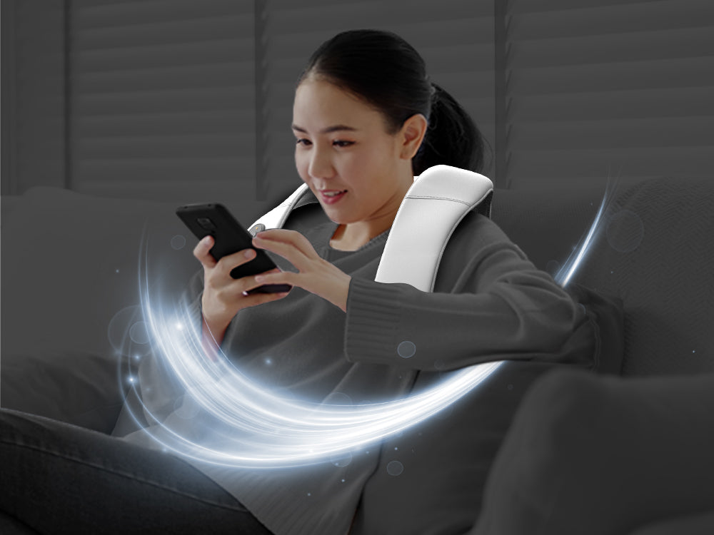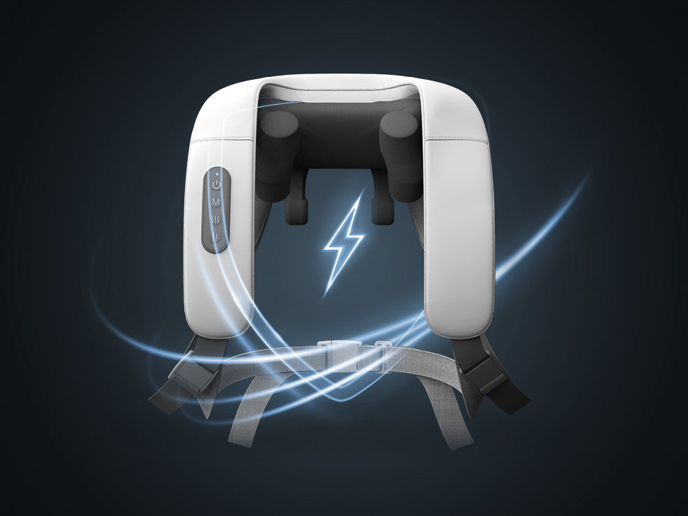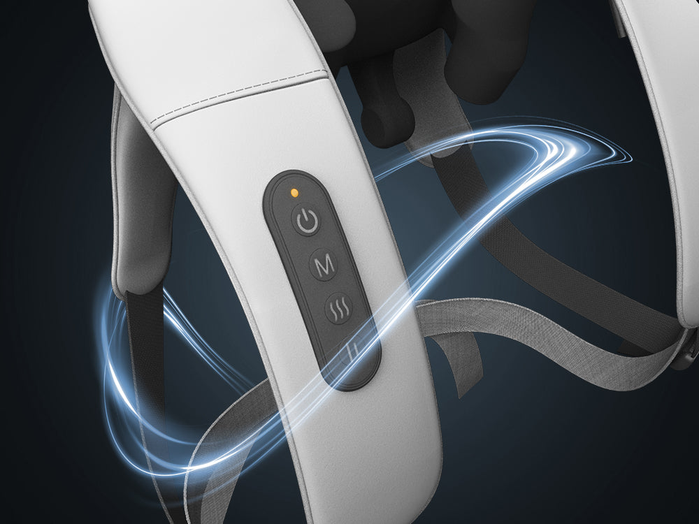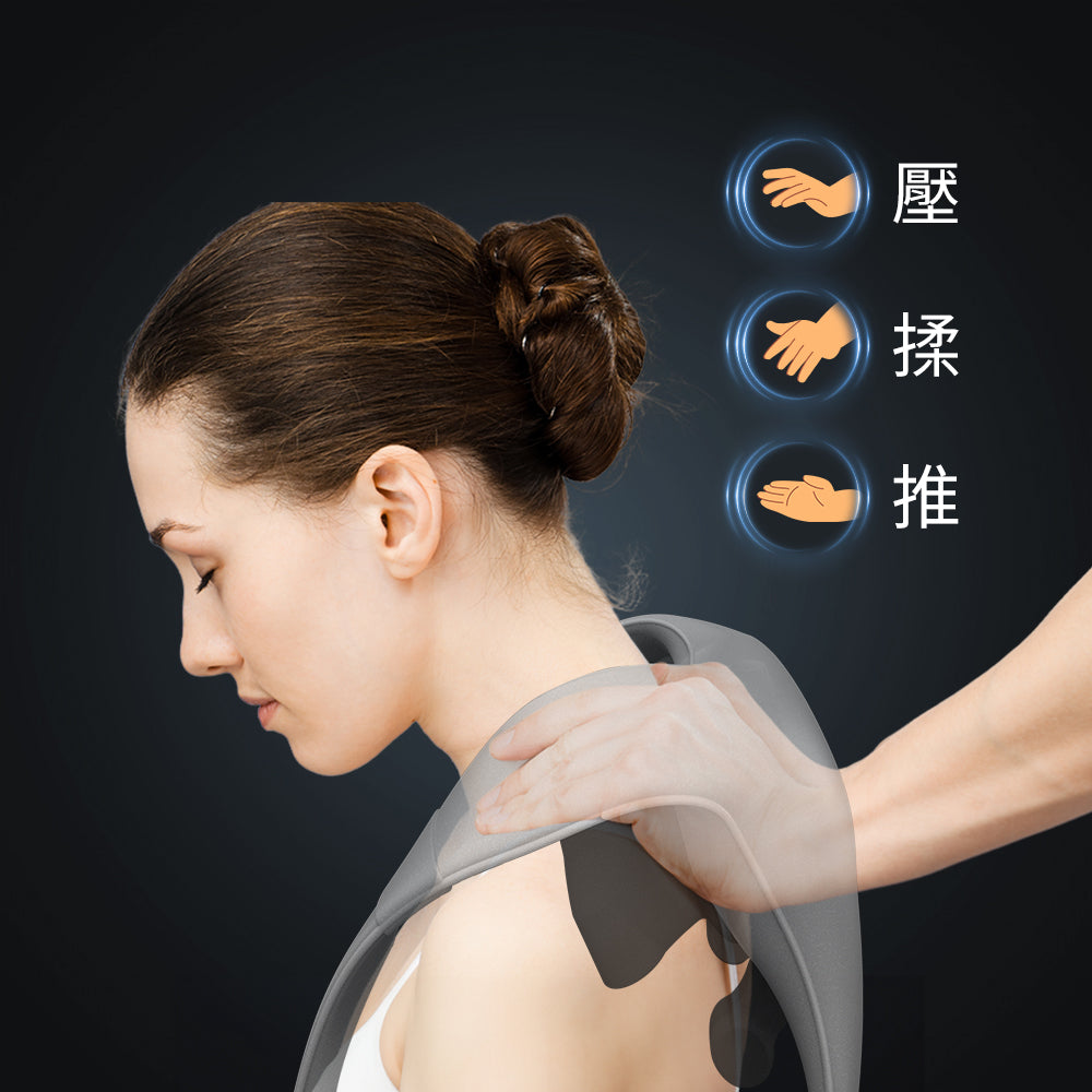 6顆按摩頭按摩,大面積覆蓋肩頸後方斜方肌群,針對穴道做按壓揉捏,觸感力道更舒適。