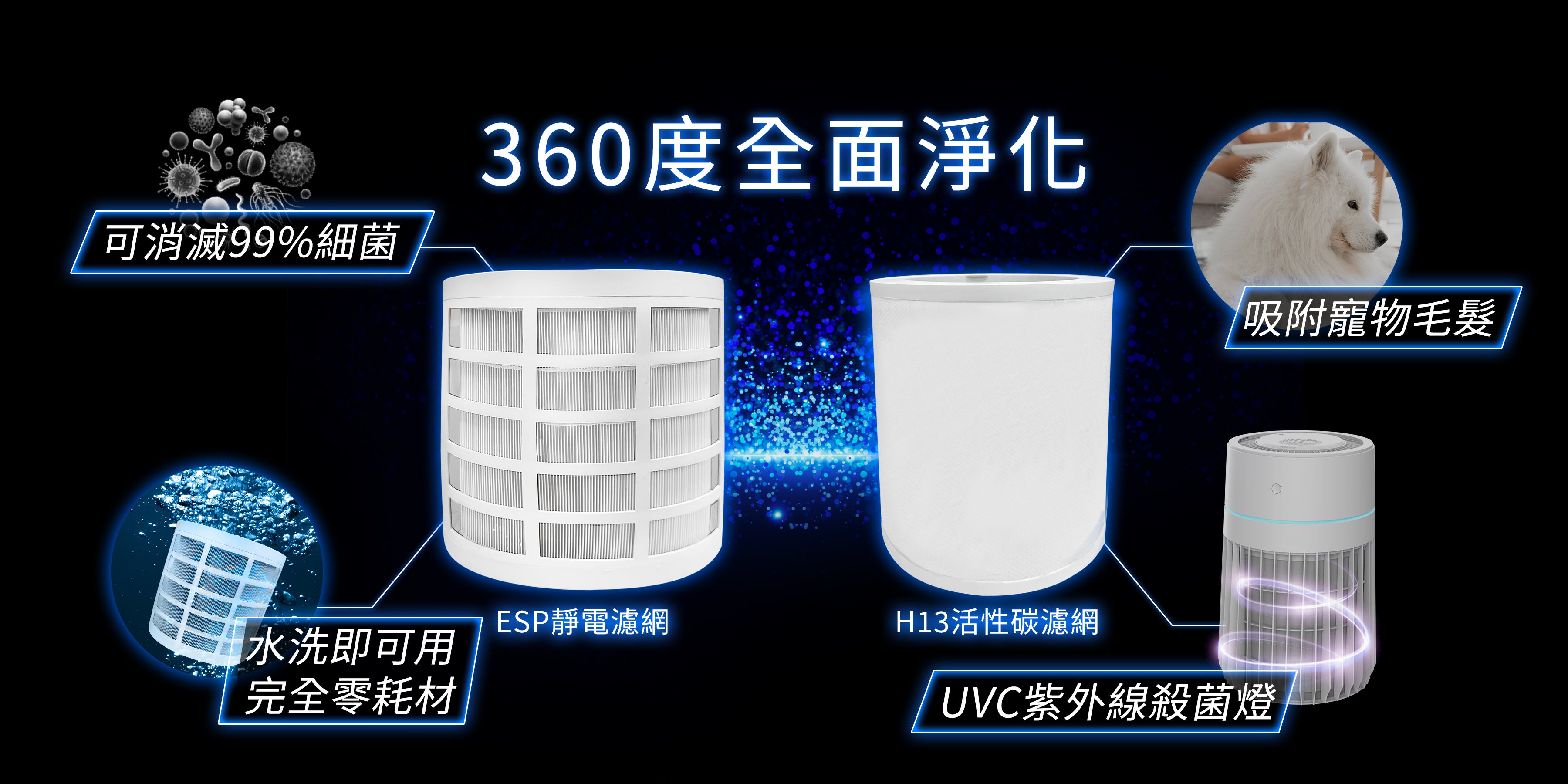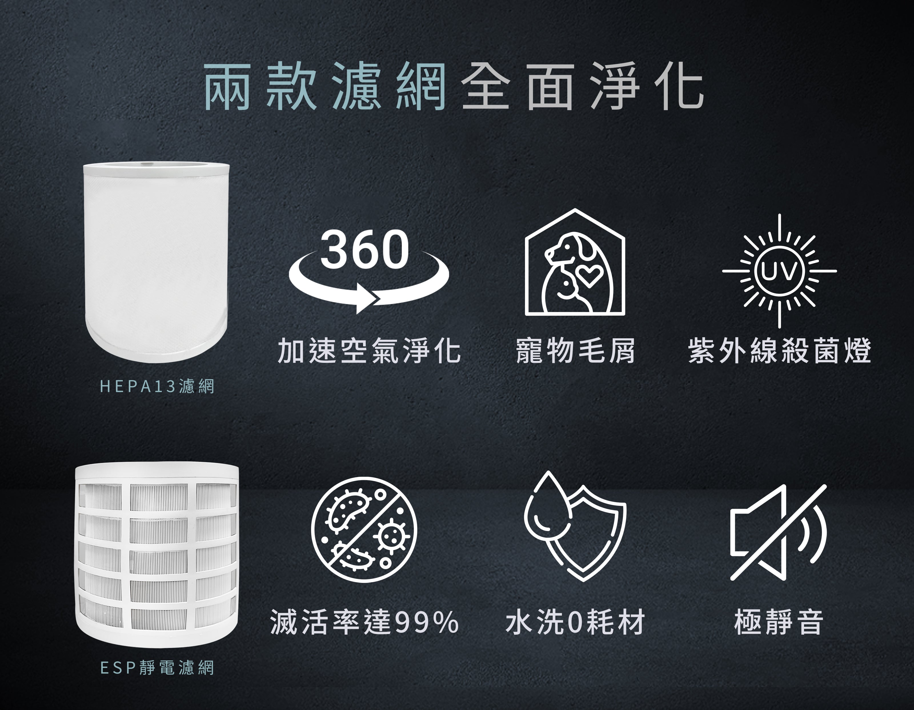 濾網:HEAP13活性碳濾網、ESP靜電吸附濾網