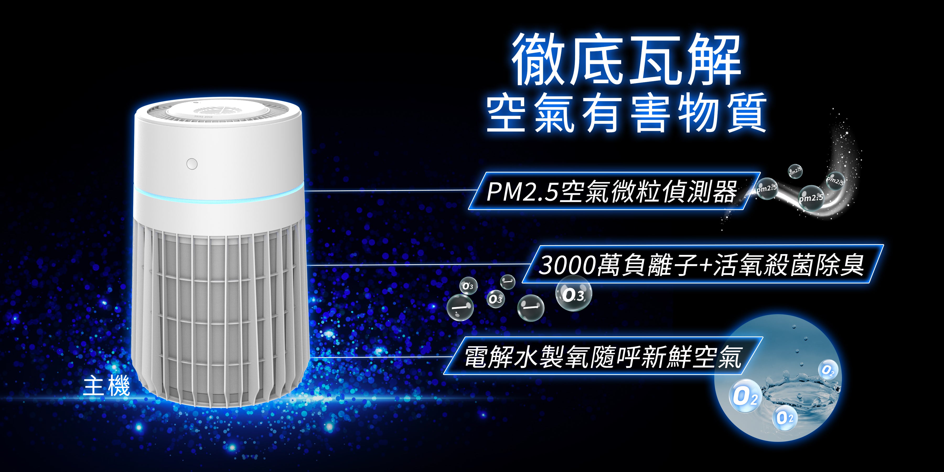釋放3000萬負離子,消除空氣異味,再透過獨家製氧技術,呼吸最新鮮的空氣,如同享受森林浴。