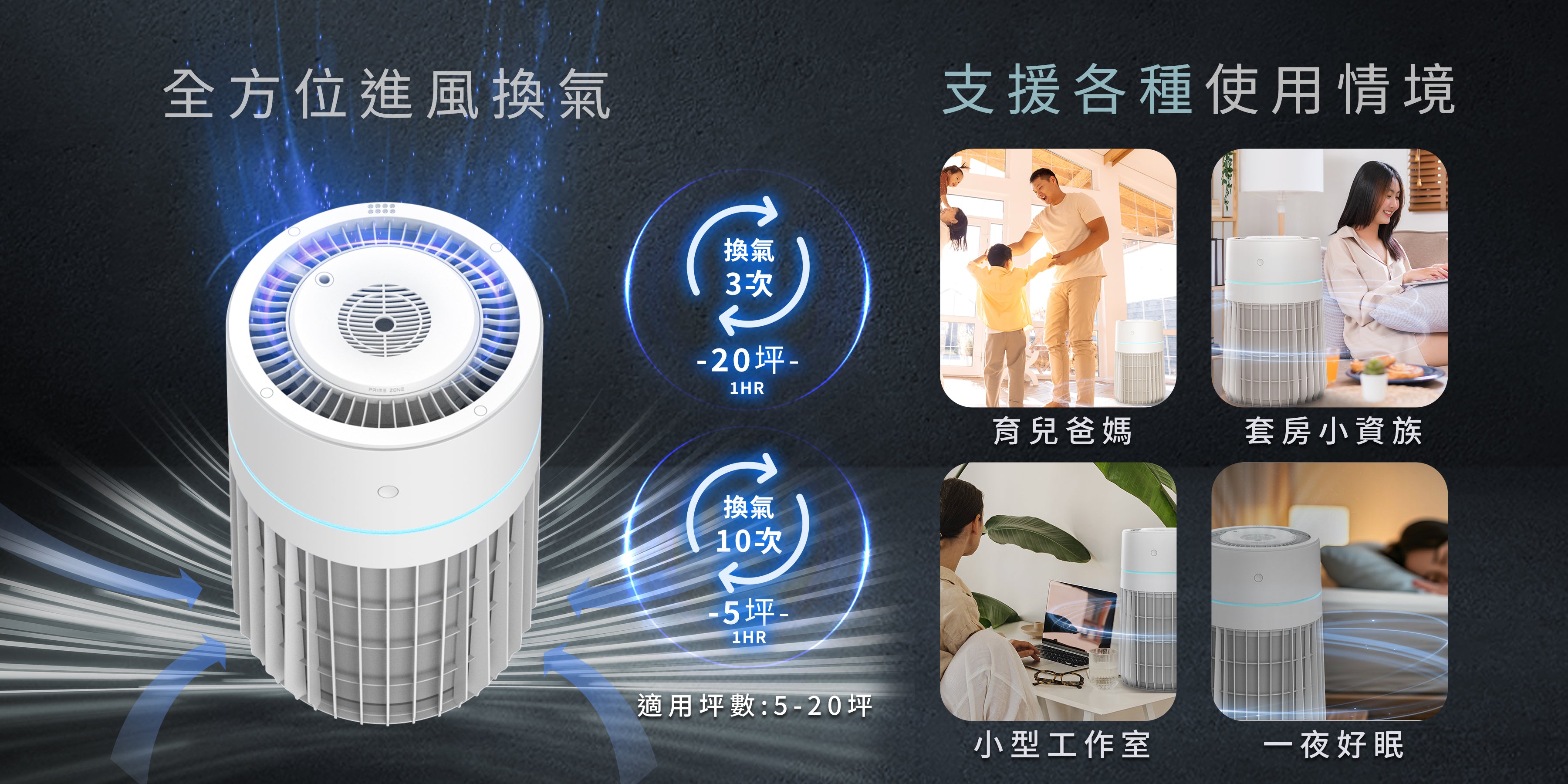 透過智能APP,隨時掌控空氣品質,遠端調控排程設定、活氧、負離子、風速、睡眠、安全鎖等,一指淨化居家各個角落!