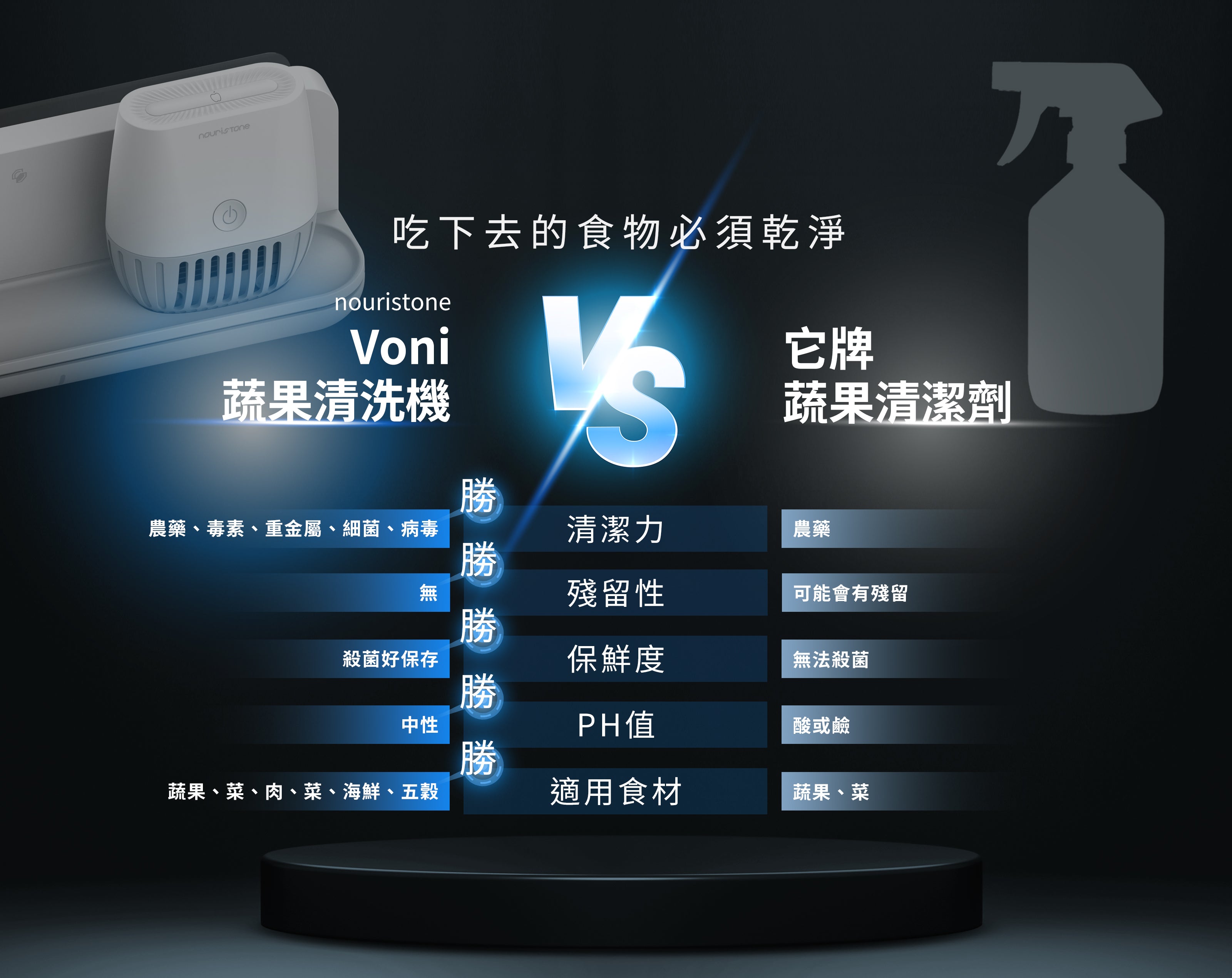 中性的自來水電解後,透過離子活性清潔食材,零限制,好安心。相較市售蔬果清潔劑有酸鹼、清潔死角、清潔殘留...等較無限制,酸鹼農藥皆可順利清潔。