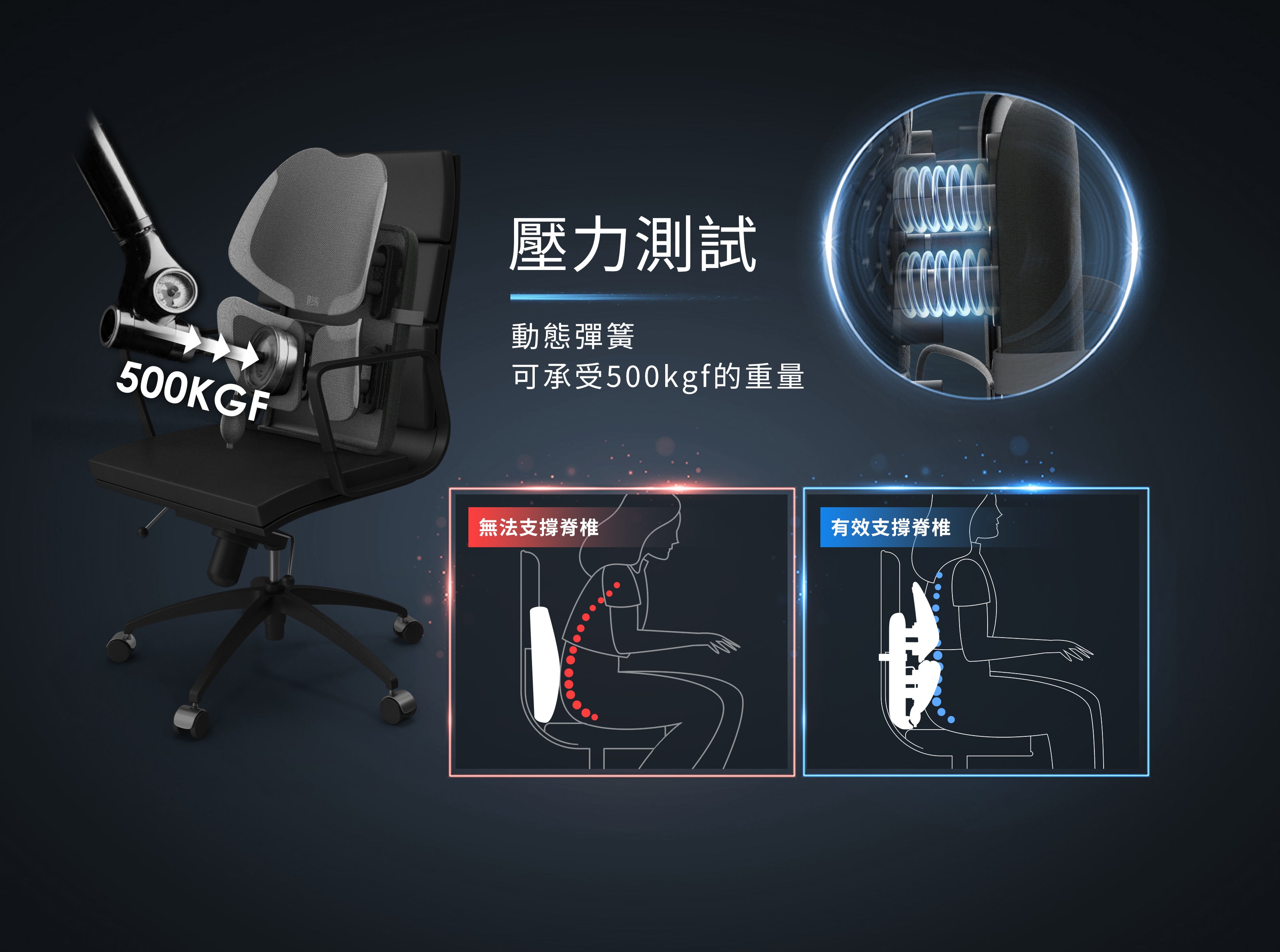 三葉式設計徹底包覆 腰、背、脊椎,貼合背部的肌肉,符合人體工學,提供全方位的支撐和舒適感受。