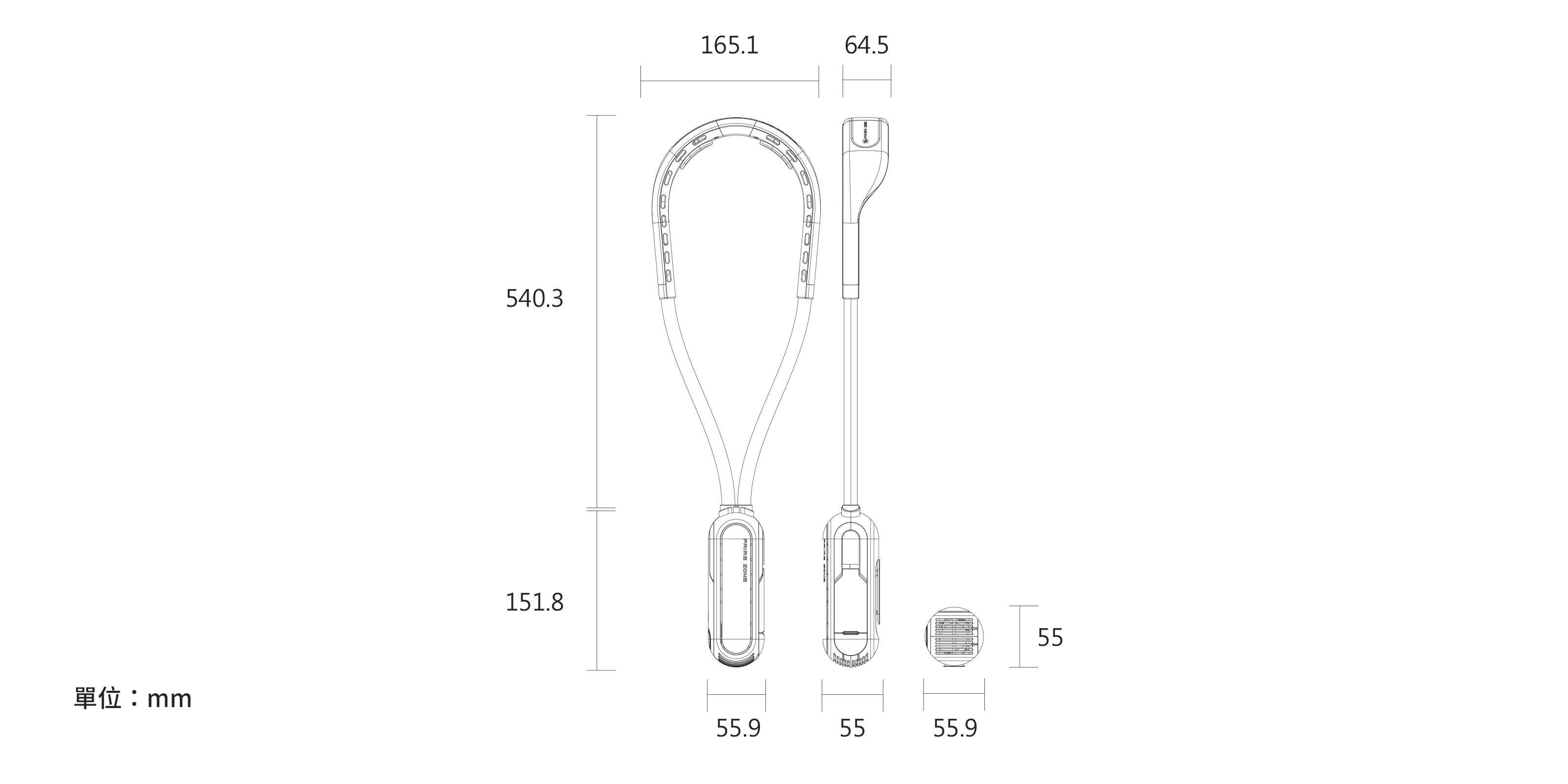 搭配掛脖配件,出風孔洞數量多且環繞至雙頰,並均勻分布頸間吹彿,有別於市面上最熱的後頸無出風孔的窘境,且最大風速10m/s,再也不怕發汗的頸後吹不到風了。
