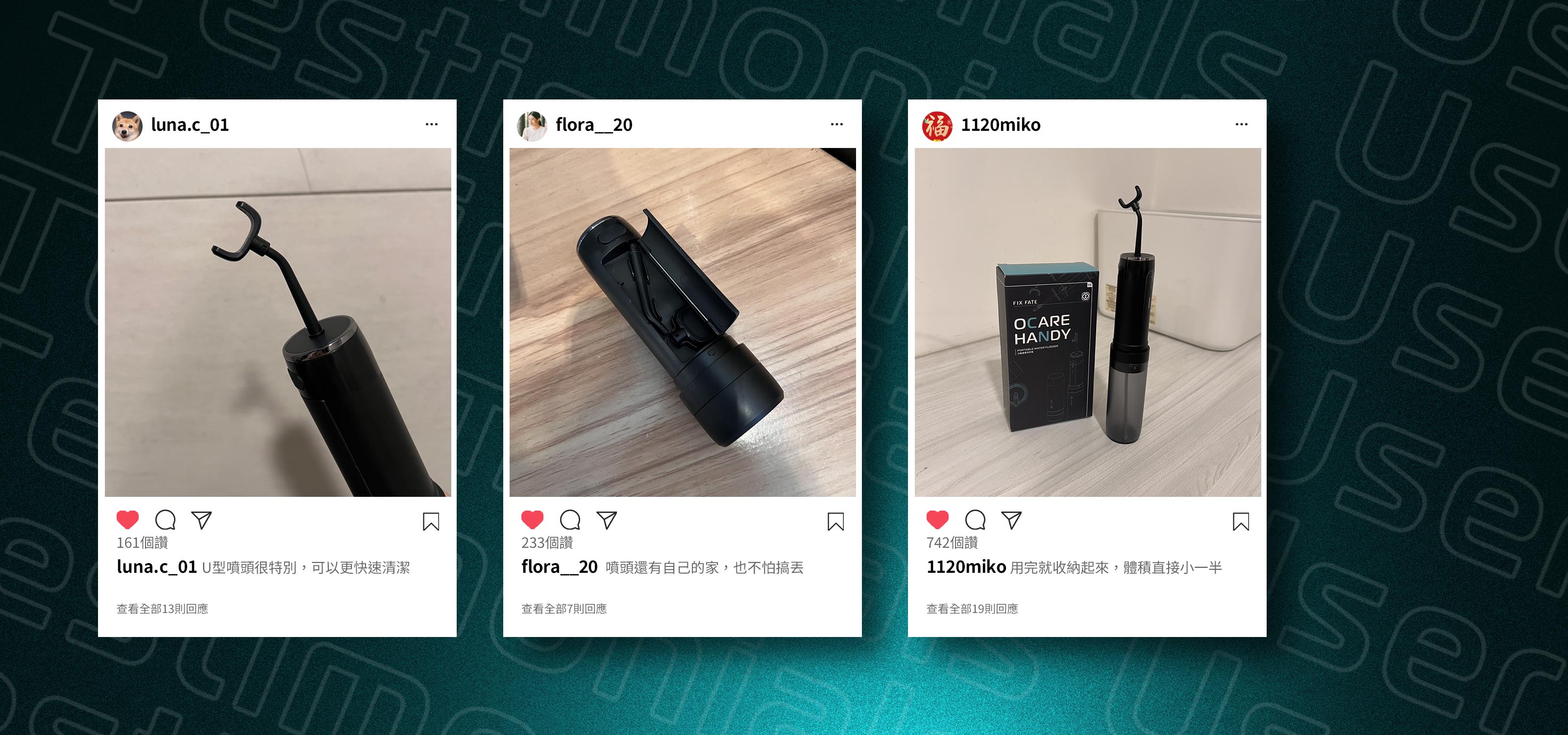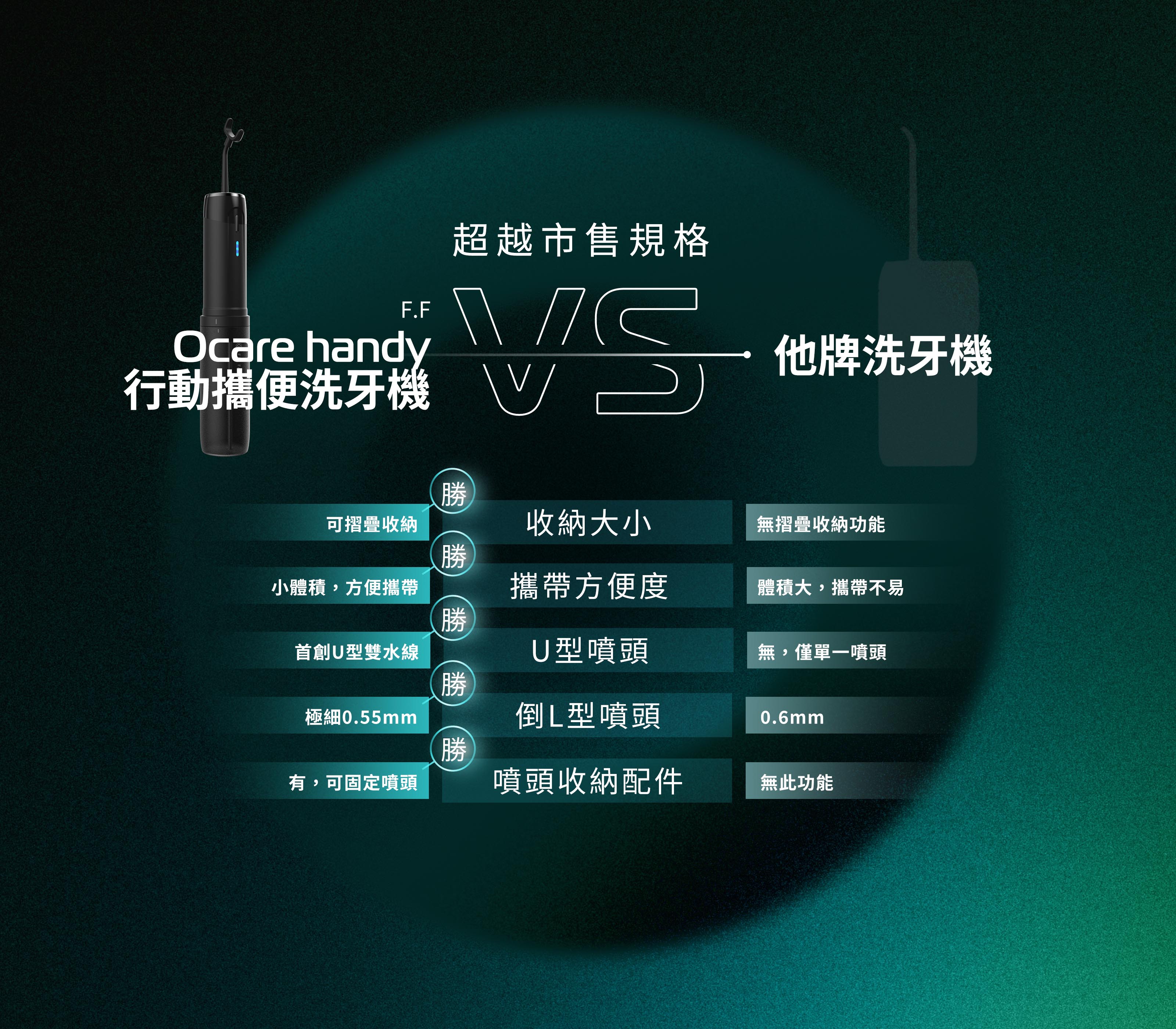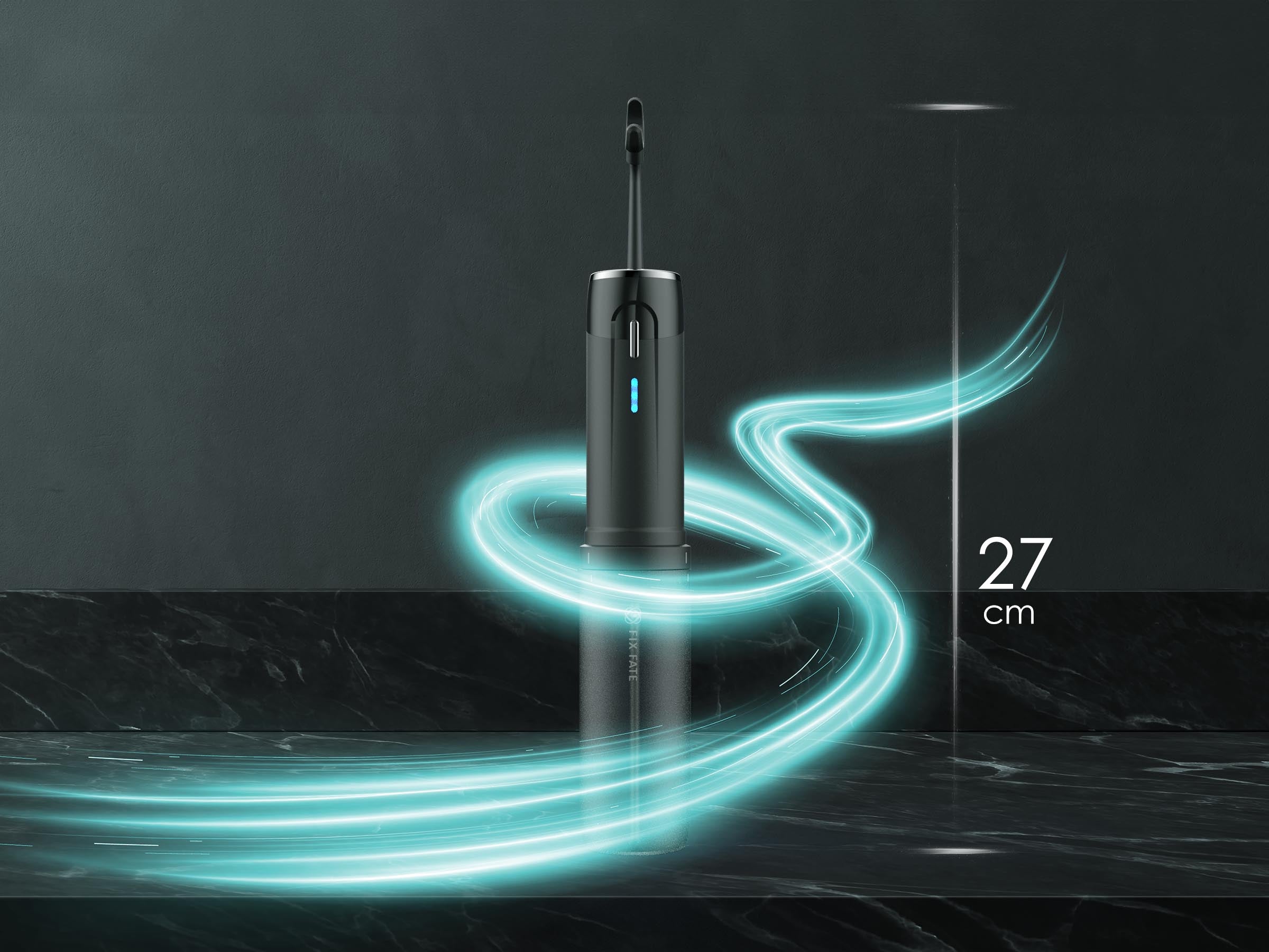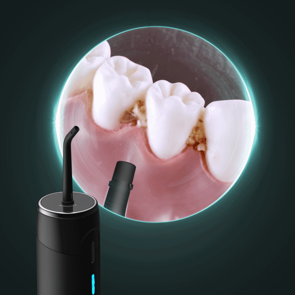我們研發出這款體積輕巧、方便攜帶使用的洗牙機,搭配獨家U型雙水線噴頭,能快速清潔大面積牙齒表面,而倒L型極細噴頭專為深入口腔和隱蔽死角設計,完美結合專業效果與日常便利,重新定義口腔護理的可能性。