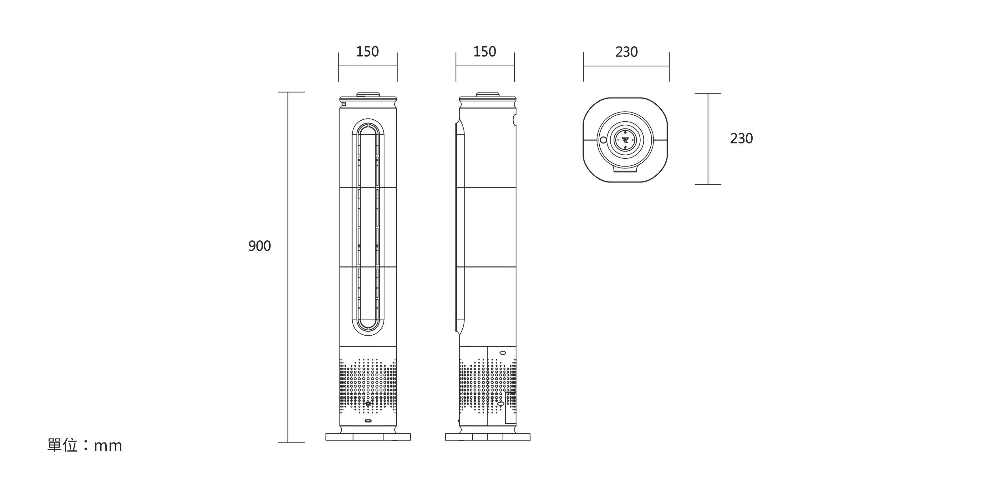 - 尺寸:150x150x900 mm﹙不含底座 ﹚、底座230x230x20 mm