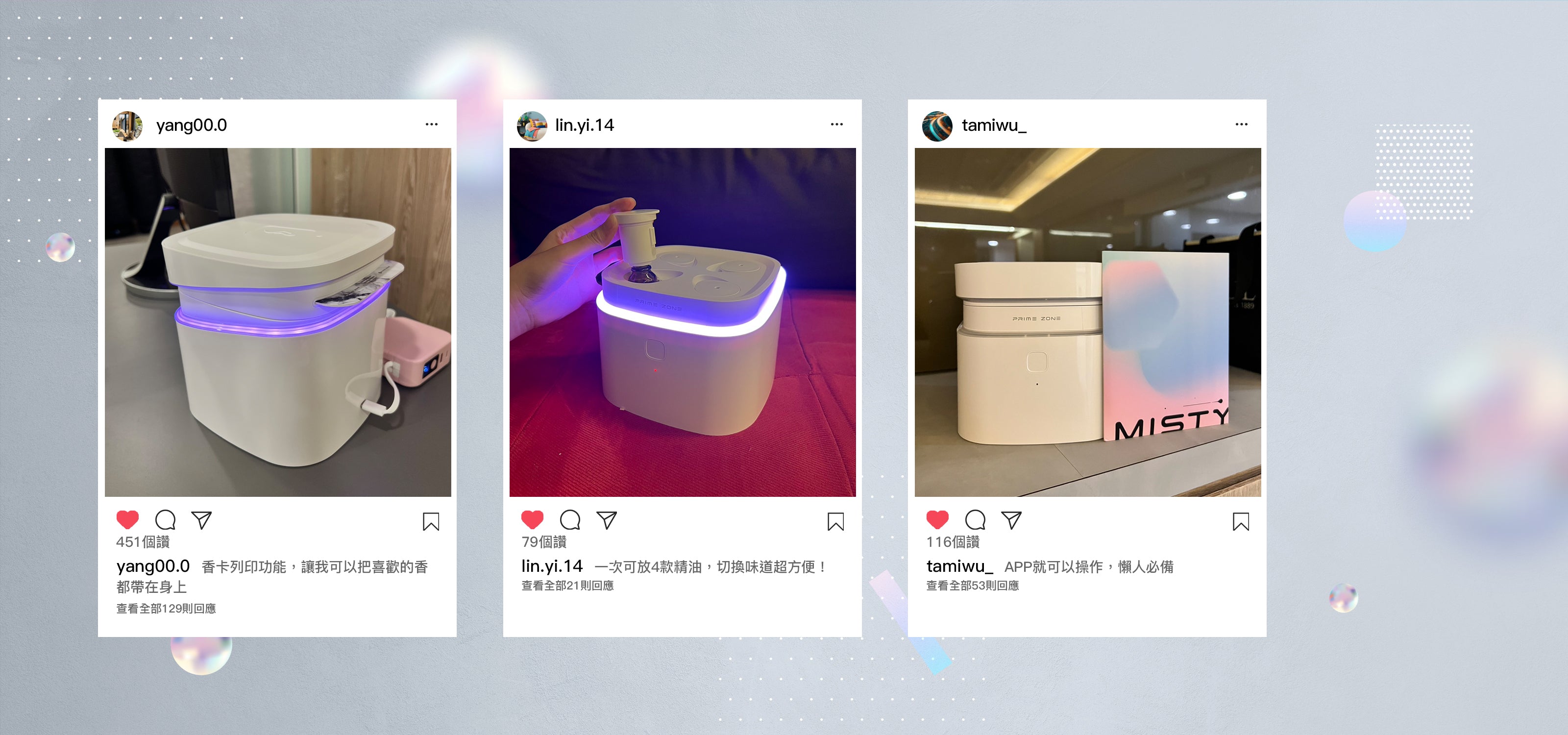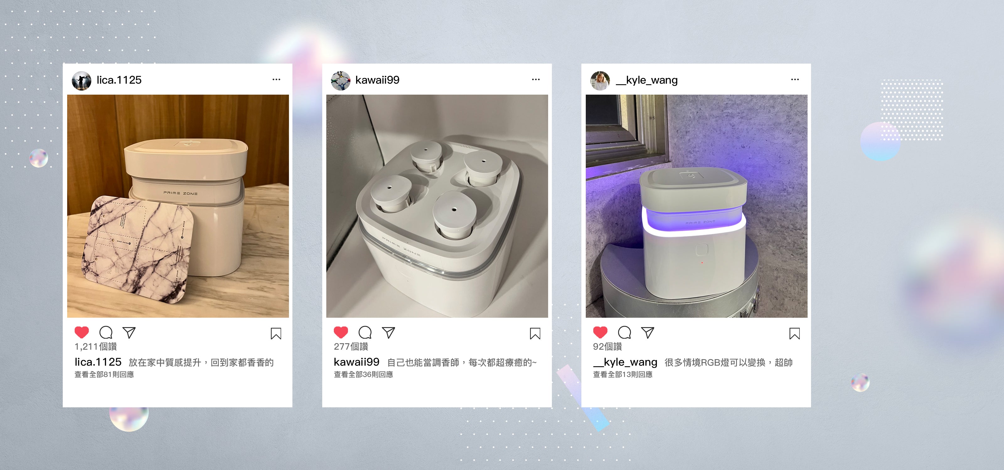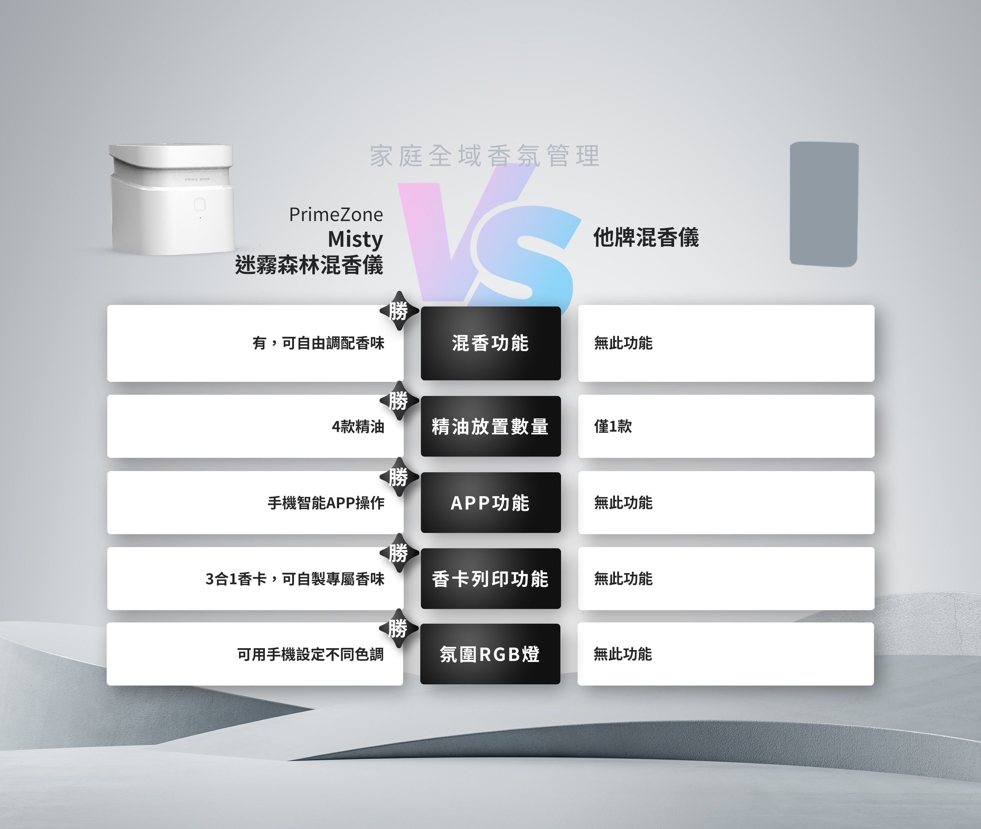 多款精油配方自由調配,自製香卡記憶專屬你的香味,讓每個環境沉浸在獨特的香氛中。