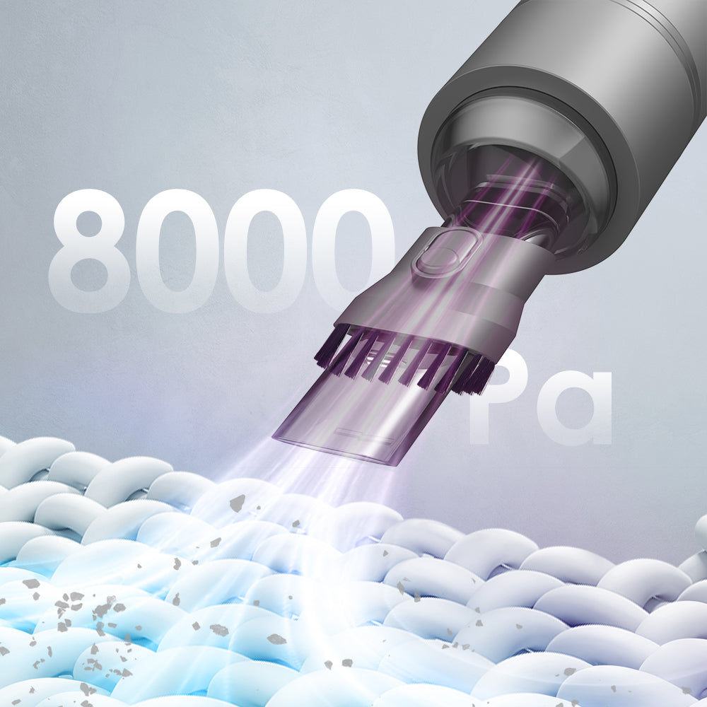 高性能強悍馬達提供超強轉速,擁有8000Pa旋風吸力。無線除塵,擺脫電線拘束,即使髒亂的小角落都能便捷吸塵,是你維護愛車、房內整潔的秘密武器。