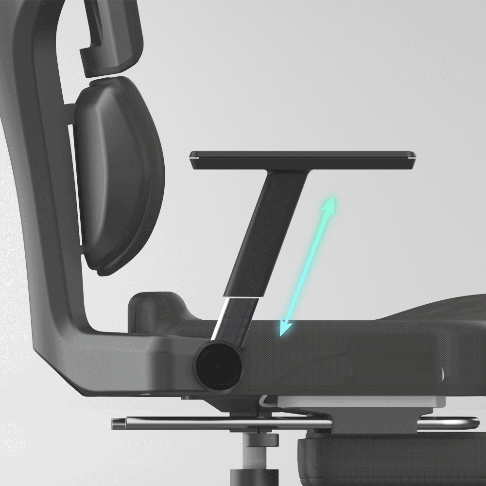 扶手可3軸多維度調整升降、平移、角度,滿足不同手臂長短、桌子高低、坐姿變化..等需求。找到最適坐姿支撐角度,還可以直接一秒挪開把手,調好高度的椅子終於靠得進去了。