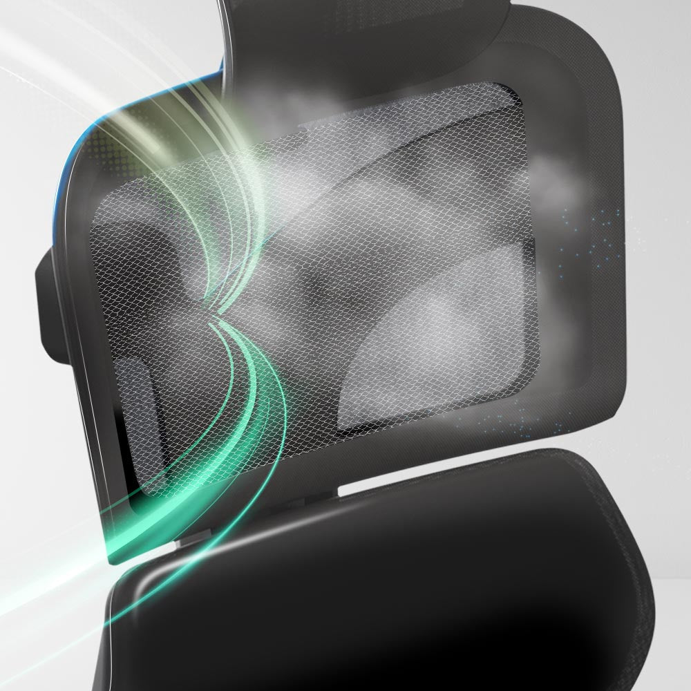全網透氣散熱,利於空氣流通和水分發散,長時間坐著也不易造成悶熱不適,長效維持舒適體感溫度24-26°C。