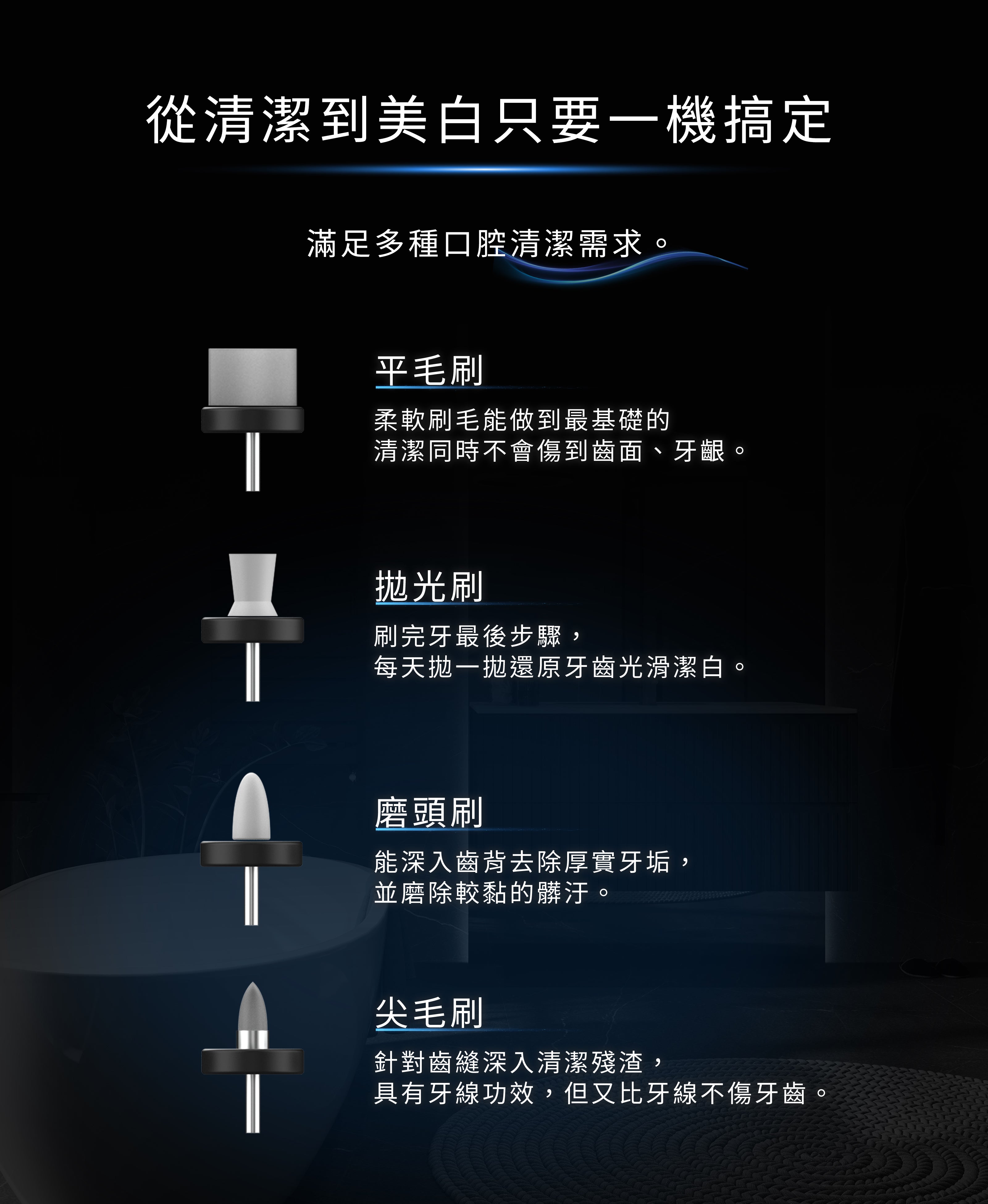針對不易去除厚實牙垢,現在只要一轉全都清乾淨。