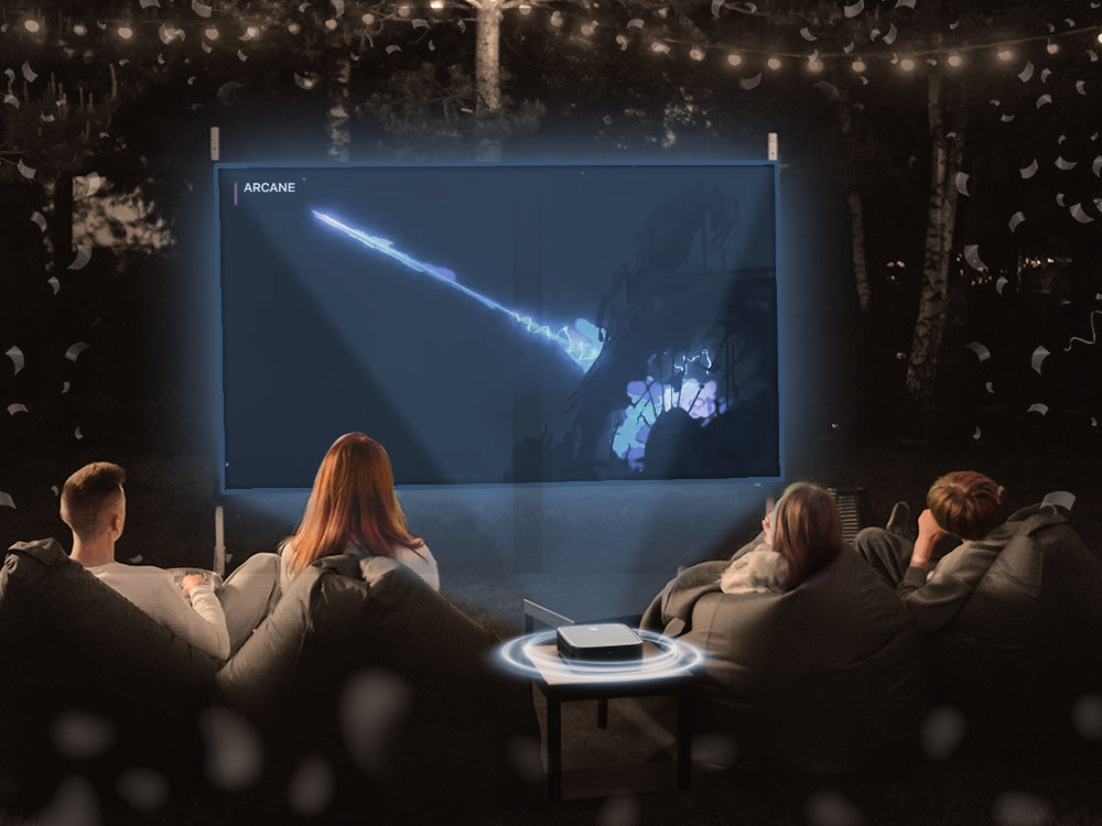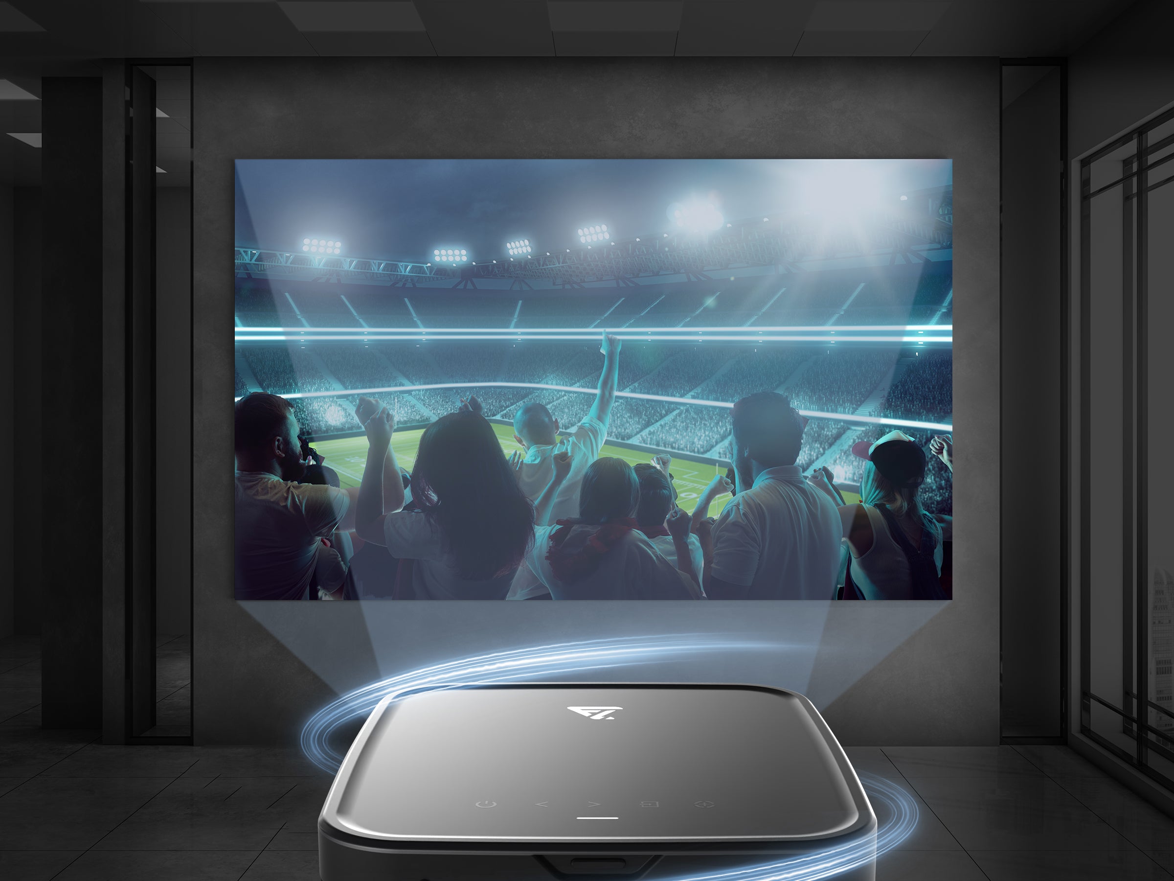 採 1.2:1 投射比,不再被傳統螢幕限制,可自由變換銀幕大小,畫面可以從80-150吋,任你挑選,輕鬆獲得專屬於自己喜好的感官體驗。